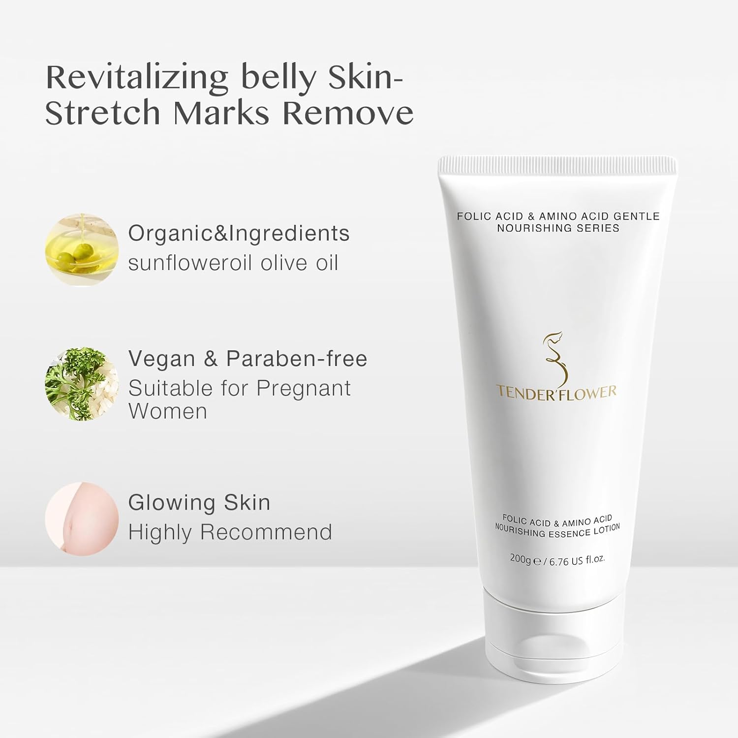 Body Lotion with Folic Acid,Stretch marks cream,Hyaluronic acid body lotion,Shea butter,Skin Firms, Smooth, unscented cream,sensitive skin, Moisturizing Dry Skin (6.7oz)