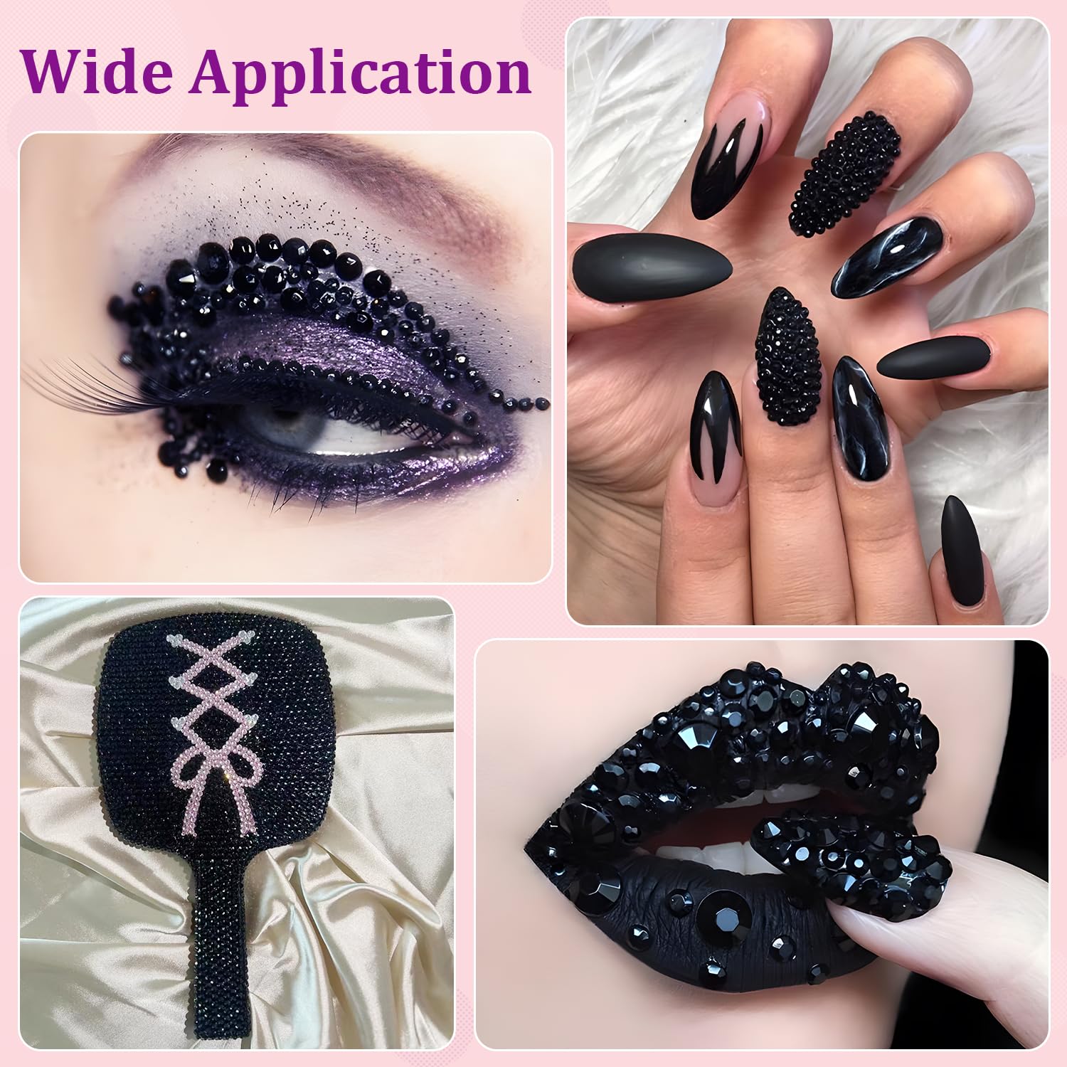 25000Pcs Resin Jelly Rhinestones for Crafting, Black 2-6mm Mixed Sizes Non Hotfix Flatback Gems, Bedazzling Crystal for DIY Crafts Clothing Tumblers Mugs Shoes Fabric Nail Art