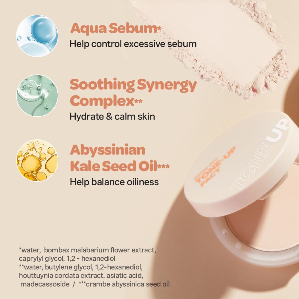 I'M MEME Compact - Skin Fit Tone Up Pact | FLawless Finish with Aqua Sebum, Soft & Velvet Pressed Powder Compact, Smooth Pores & Fine Lines, Korean Makeup, Translucent, Oily Skin, 0.35 Oz