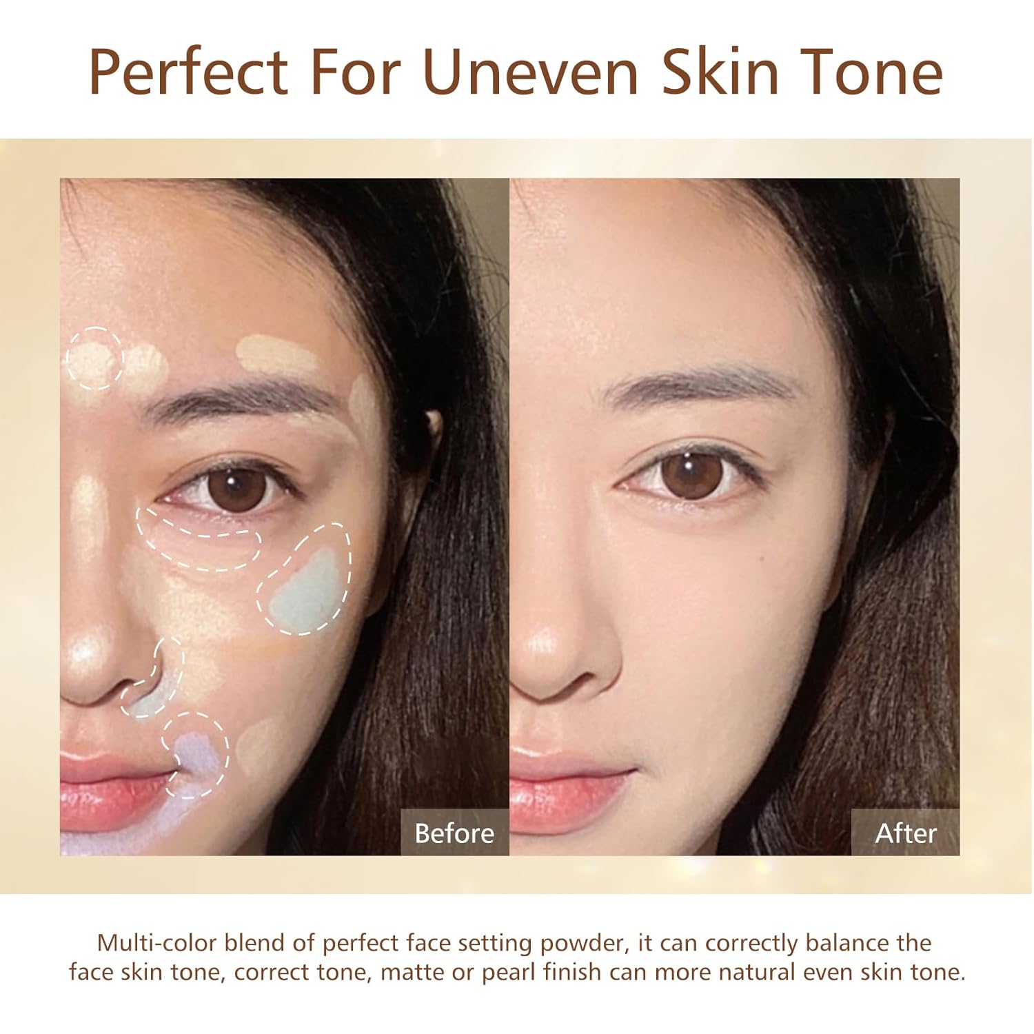 - 【Color Correct Brightening Setting Powder】Multi-color blend of perfect face setting powder, it can correctly balance the face skin tone, correct tone, matte or pearl finish can more natural even skin tone.