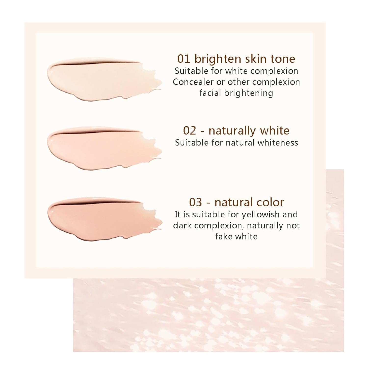 - No Wrinkles --- Smooth, weightless texture that does not crease and easily blends seamlessly into the skin, creating a skin-like, flawless finish.