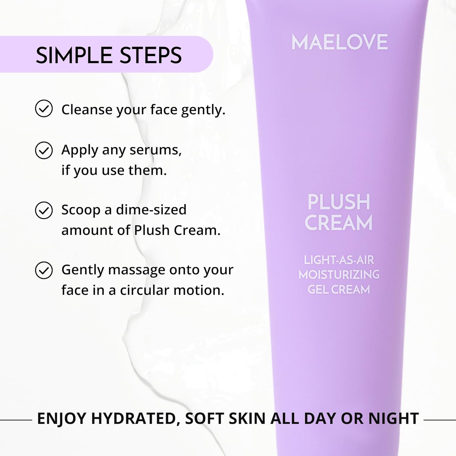- FEATHERLIGHT HYDRATION: Experience the luxurious, plush texture of Maelove Plush Cream; a lightweight moisturizer that delivers long-lasting hydration without the greasiness; perfect for both morning and night routines, locking in serums and moisture effortlessly.