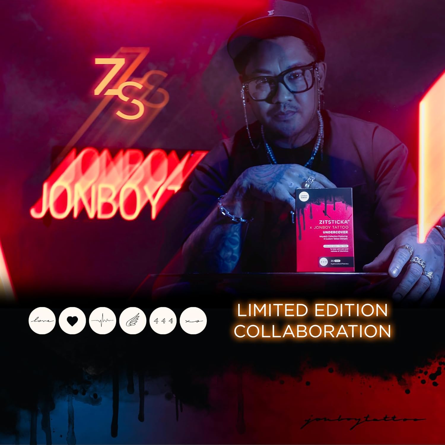 - LIMITED EDITION COLLABORATION: Discover the exclusive ZitSticka x Jonboy InkPatch Collection temporary tattoos, a custom collaboration with celebrity tattoo artist Jonboy. Featuring four unique Jonboy tattoo designs, these patches celebrate self-acceptance and positive mental health, merging skincare with art in a way thatβs both meaningful and effective.