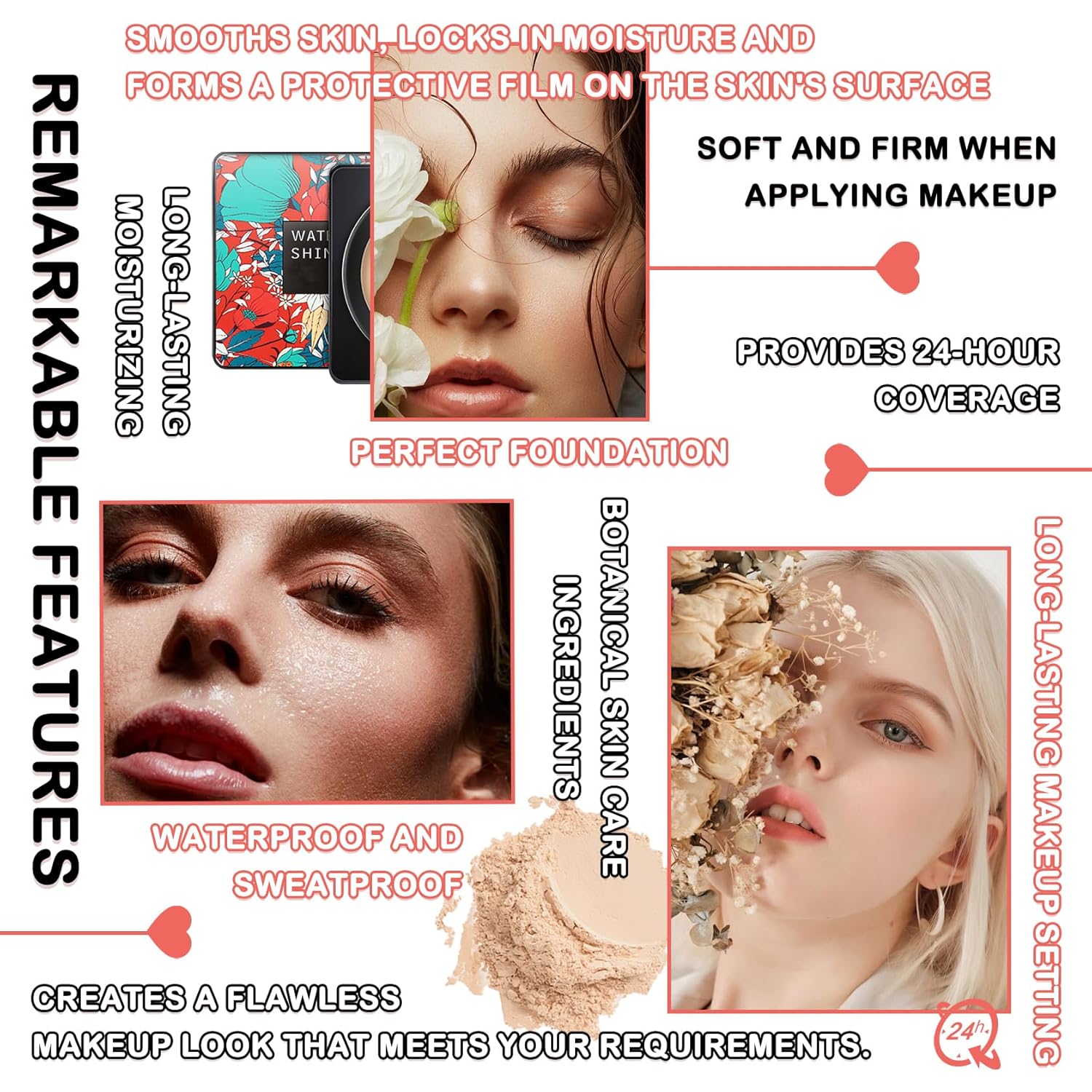 - 🌸【Exquisite Foundation Makeup Set】Mushroom head air cushion cc cream foundation set contains setting powder, face moisturizer and makeup sponge, a value-for-money set worth having.