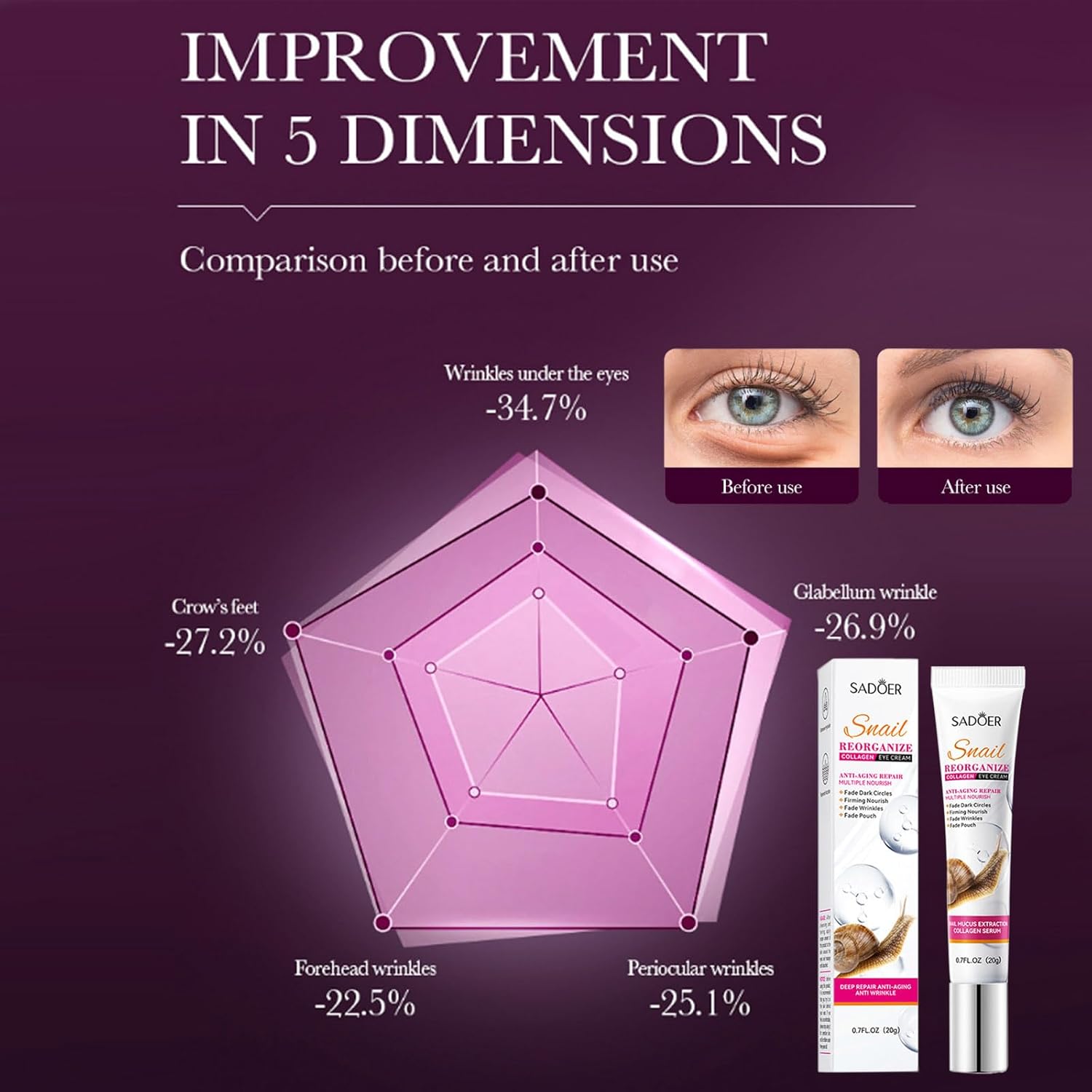 Snail Repair Eye Cream with Snail Mucin Extract and Collagen,Eye Wrinkle Firming Cream Under Eye Repair Cream for Anti-aging Hydrating Reducing Dark Circles Fine Lines Puffiness