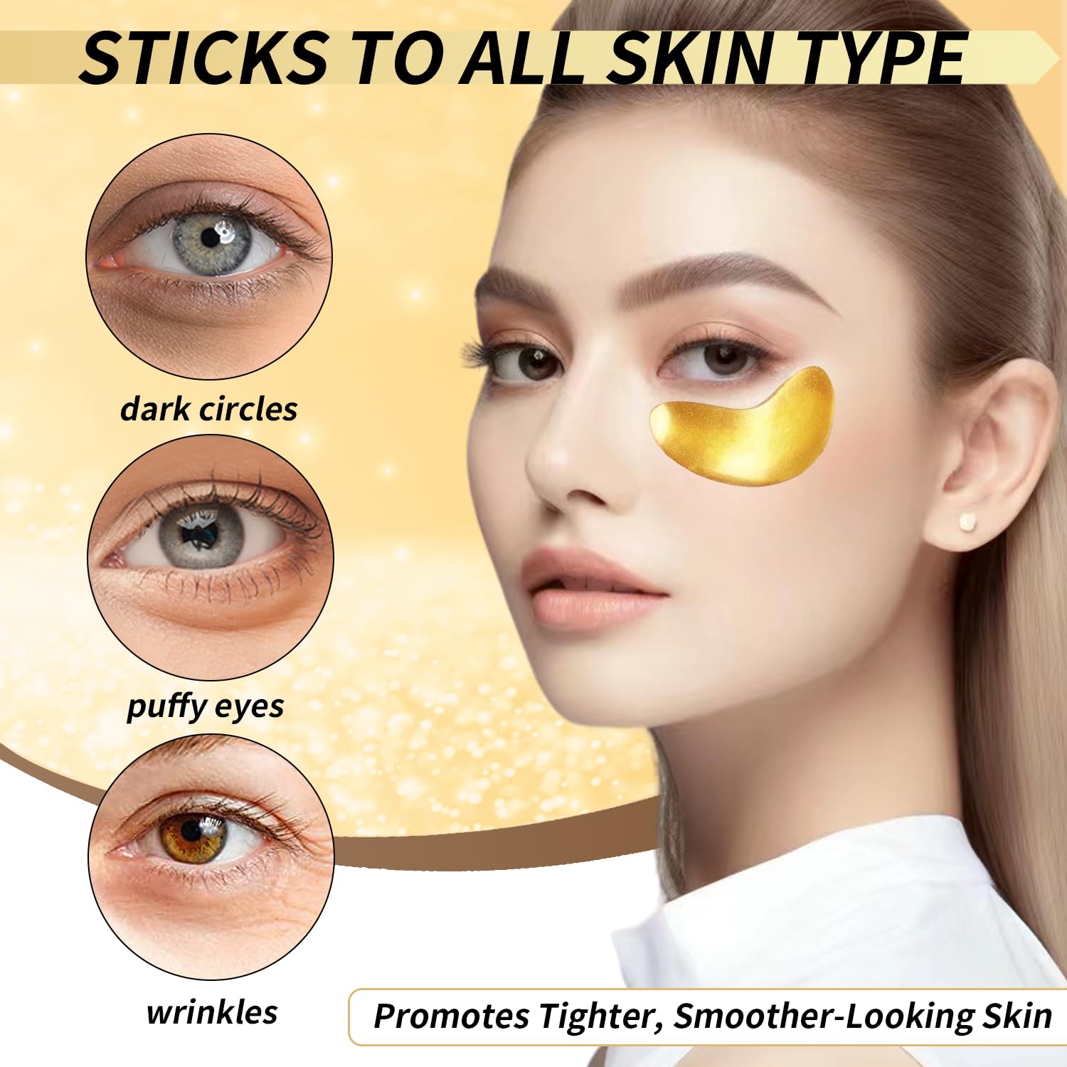 - Dermatology Tested Under Eye Patches with Safe& Effective Ingredients: Infused with a blend of collagen, 24k gold and multiple hyaluronic acids which deeply repair the eye skin, help soothe, rejuvenate & protect the skin around your gorgeous peepers without any side effects