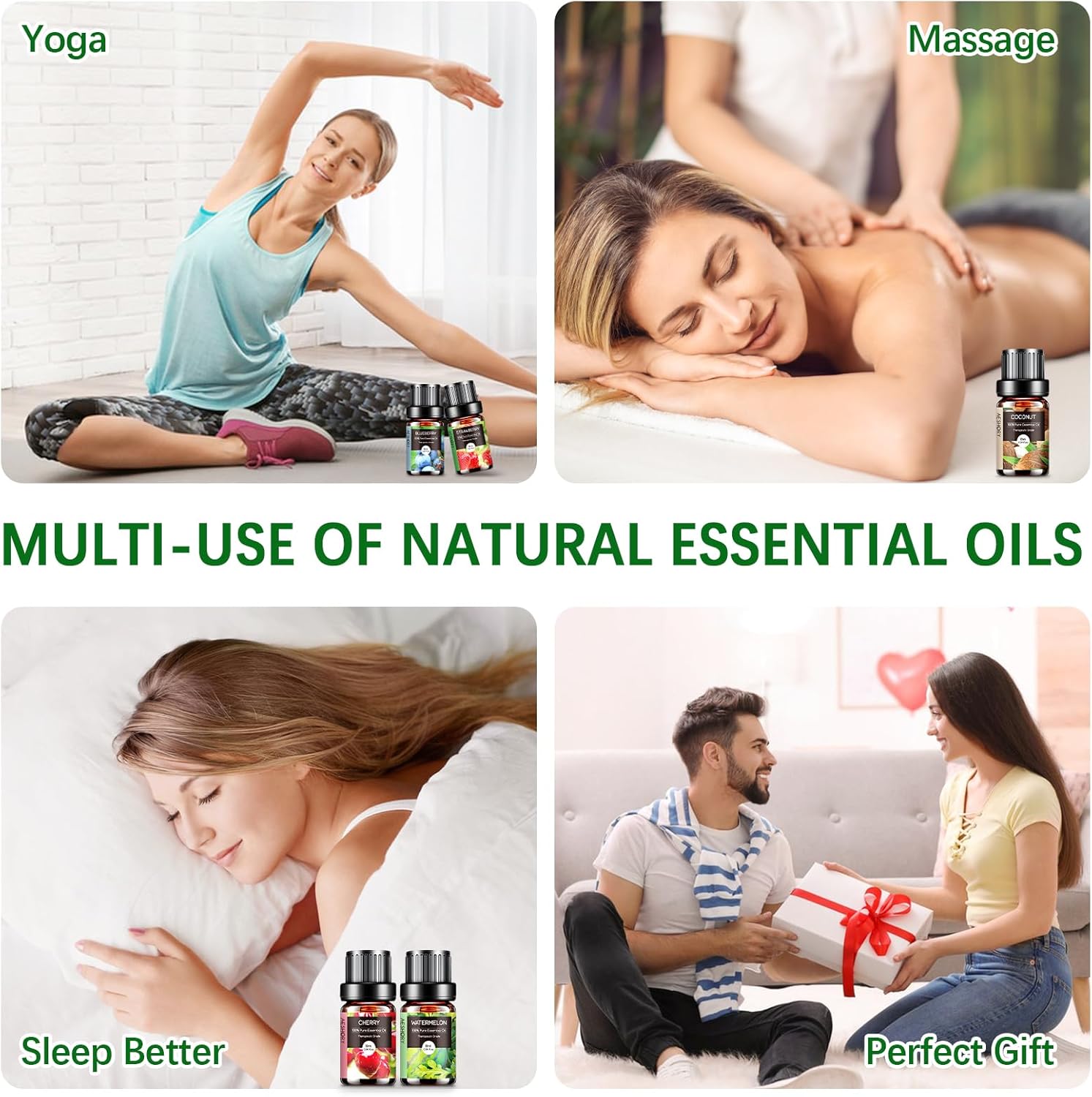 - π₯₯γMultiple UsesγThese essential oils can be used for aromatherapy, diffuser, massage, skin & hair care. Simply add a few drops to any diffuser and fill your entire room with that aroma, suitable for home care (large room, bedroom, living room, bathroom), office, outdoors, campground, yoga room and spa for a whole day relaxation.