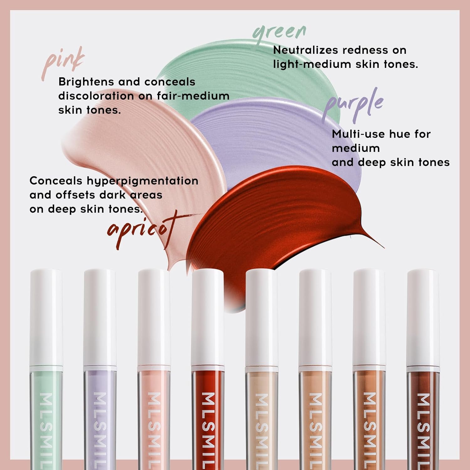 - 【8 Colors Color Correcting Concealer Foundation】8 colors correcting concealer foundation for all skin types, HD studio skin flawless concealer foundation, including 8 different colors, including color correcting green, red, pink, and lavender, providing natural to medium coverage on all skin tones and types; Also suitable as a contouring concealer to sculpt chin and cheekbones It's a liquid concealer for the under eye, face, and body.