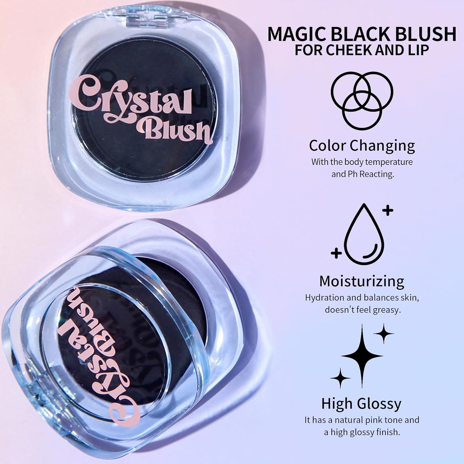 KYDA Black Cream Blush, Color Changing Tint, Magic Black Blush for Cheek & Lip, Natural Pink Glossy Face Blusher, Moisturizing Lightweight, Crystal Make Up Blush