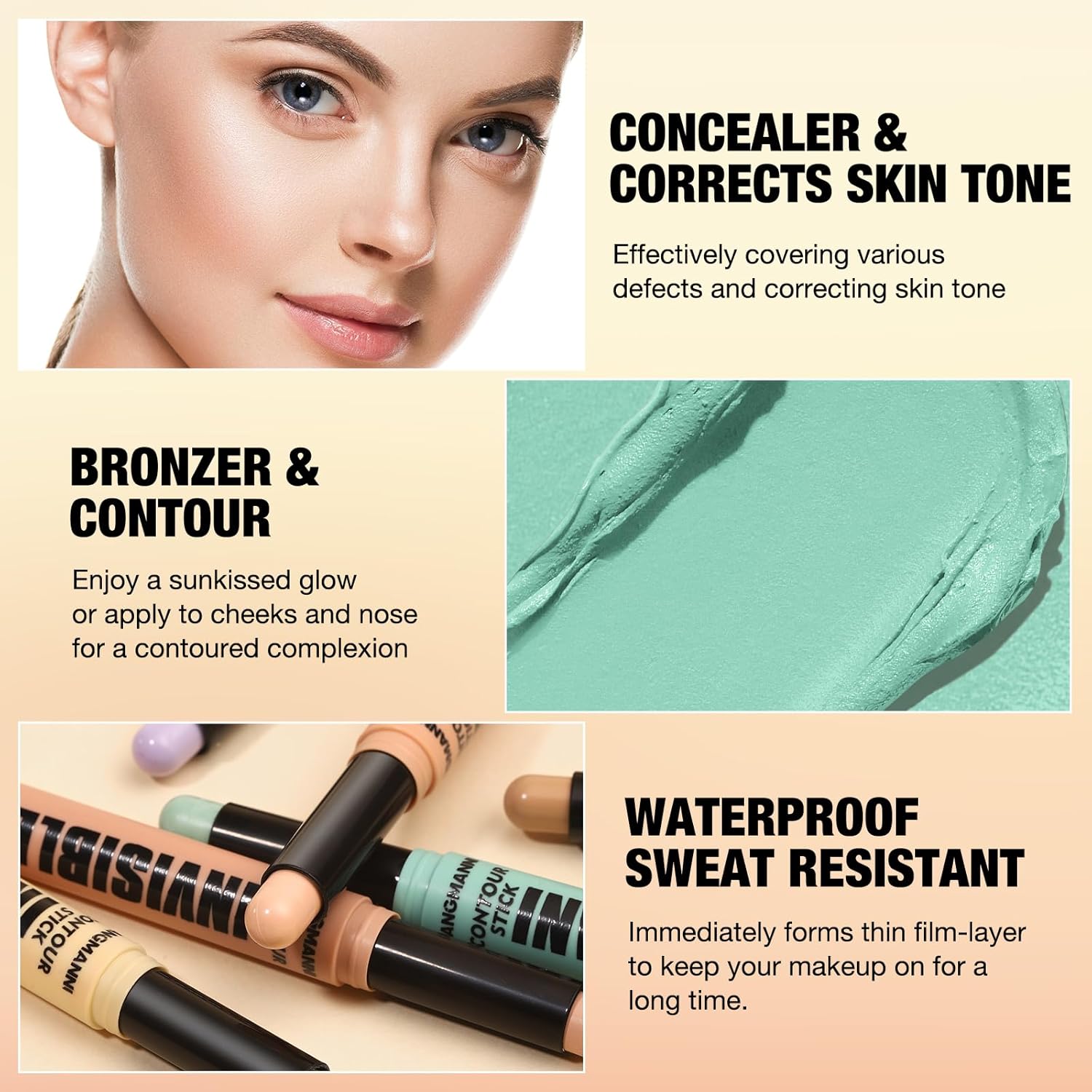 - 【Concealer&Corrects Skin Tone】:Effectively covering variousdefects and correcting skin tone