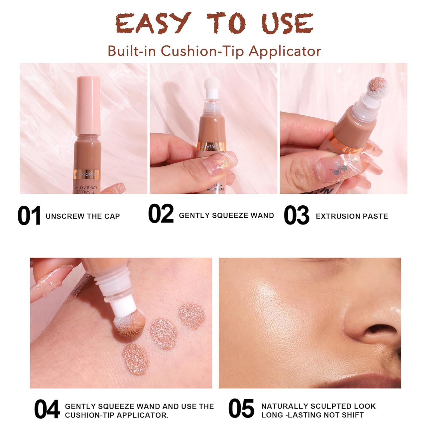 - CUSHION-TIP APPLICATOR: Gently squeeze wand and use the cushion-tip applicator to apply to your hairline, temples, sides of your nose, hollows of your cheeks, and jawline, then blend in color with a bronzer brush for a naturally sculpted look.