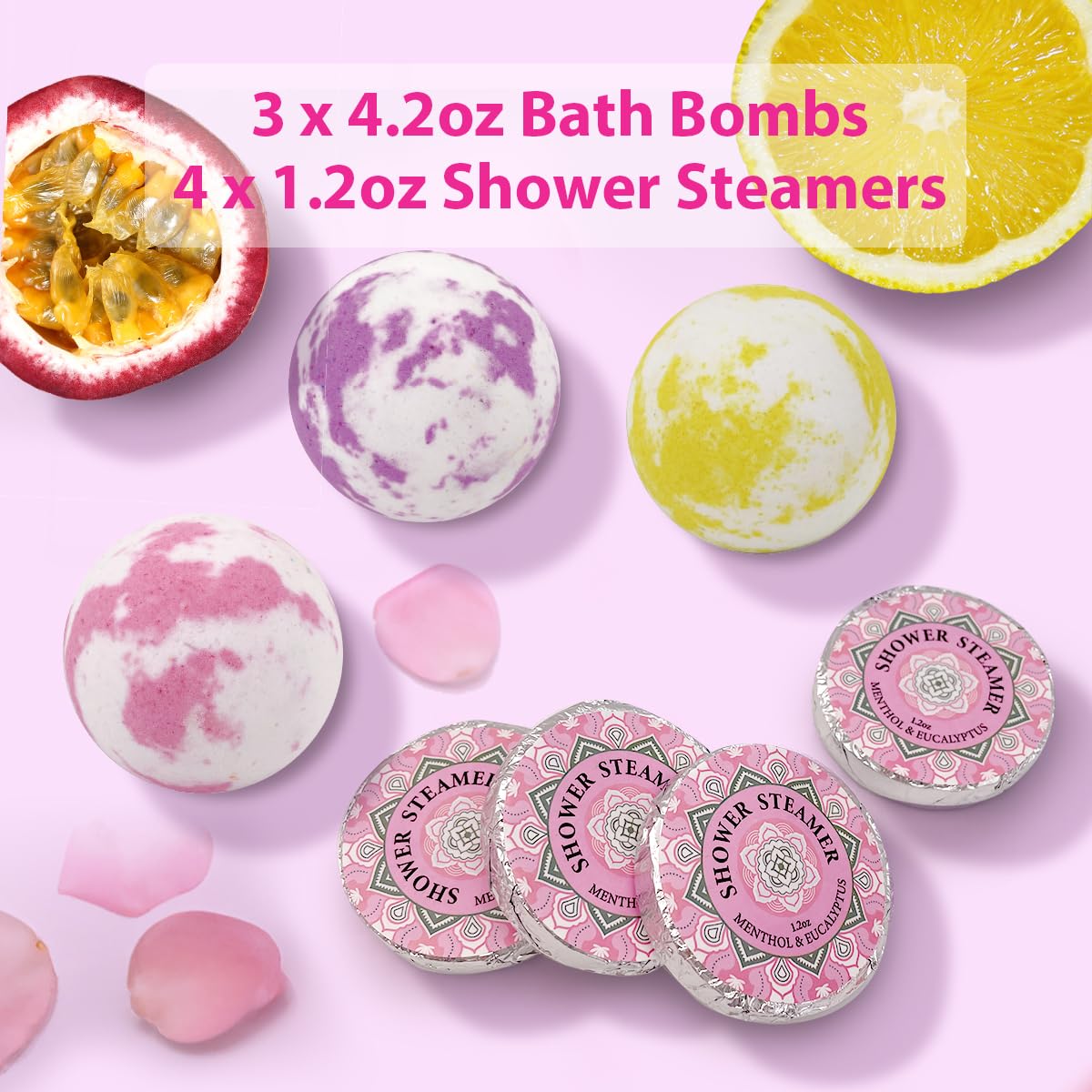 - Aromatic Shower Steamers and Bath Bombs: Transform your shower and bath routine into a blissful spa session with our shower steamers and bath bombs. Infused with essential oils, they release soothing fragrances that calm the mind, relieve stress, and rejuvenate the senses, providing an ultimate relaxation experience.