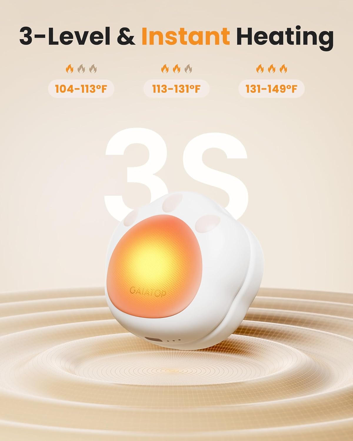 - Fast Heating and 3 Heat Settings: The hand warmers generate a large amount of heat and hot hands in seconds; Each with 3 heat settings, adjust the temperature to your comfort level, the temperature range from 104 Β°F to 149 Β°F In 1st to 3rd level