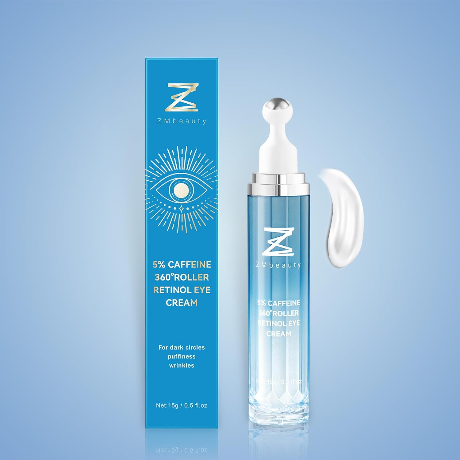 Under Eye Cream with 5% Caffeine, Dark Circles Under Eye Treatment with Retinol, Anti Aging Eye Serum with 360° Massage Roller for Eye Bags, Wrinkles and Puffiness, 0.5 fl. oz,3 Pack