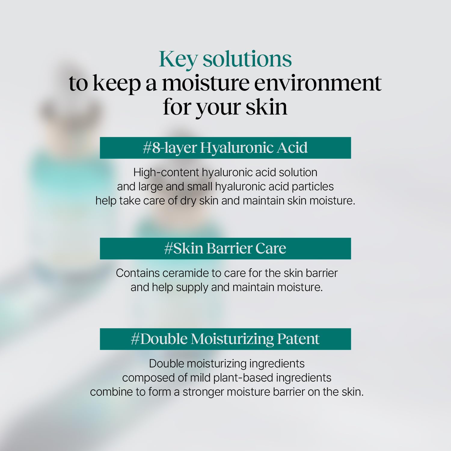 - 85% Hyaluronic Acid Formula: Contains a high content of hyaluronic acid with a blend of 8 molecular sizes to deliver layered hydration and support moisture retention.