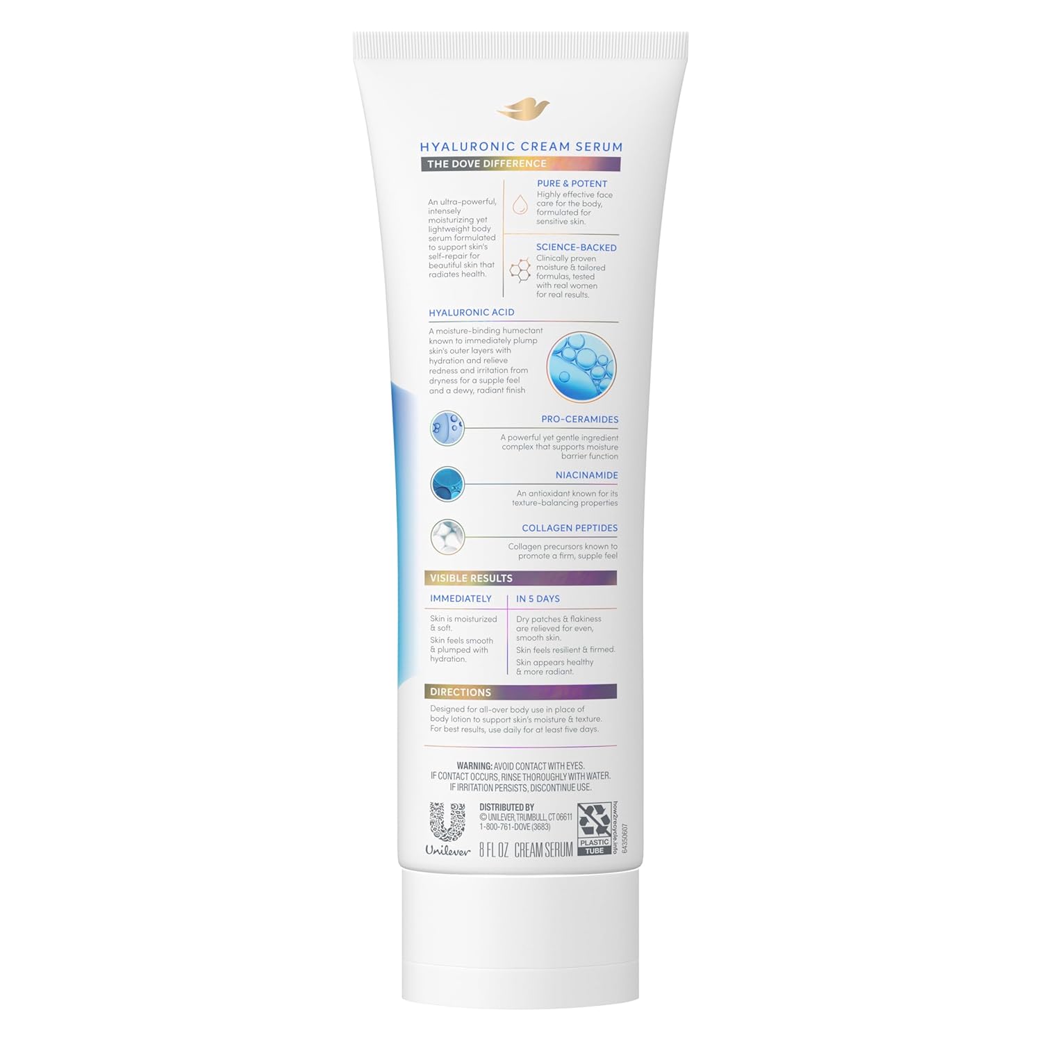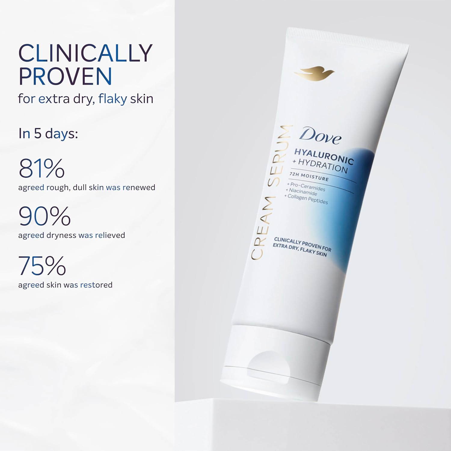 Dove Cream Serum Hyaluronic + Hydration for Extra Dry, Flaky Skin, with Pro-Ceramides, Niacinamide and Collagen Peptides Lotion, 8 oz