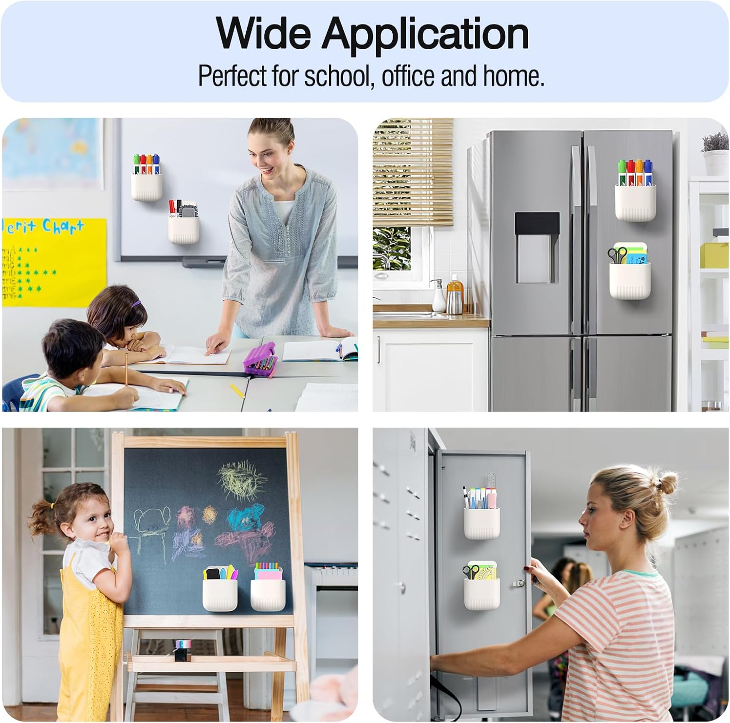 - γMagnetic Storage HolderγMeasuring 6.3x3.7x3.7in/ 16x9.5x9.5cm, the dry erase marker holder has a appropriate size and can organize various office or school supplies, such as markers, pencils, pens, whiteboard erasers, sticky notes, etc. Keep office essentials organized and say goodbye to messy storage!