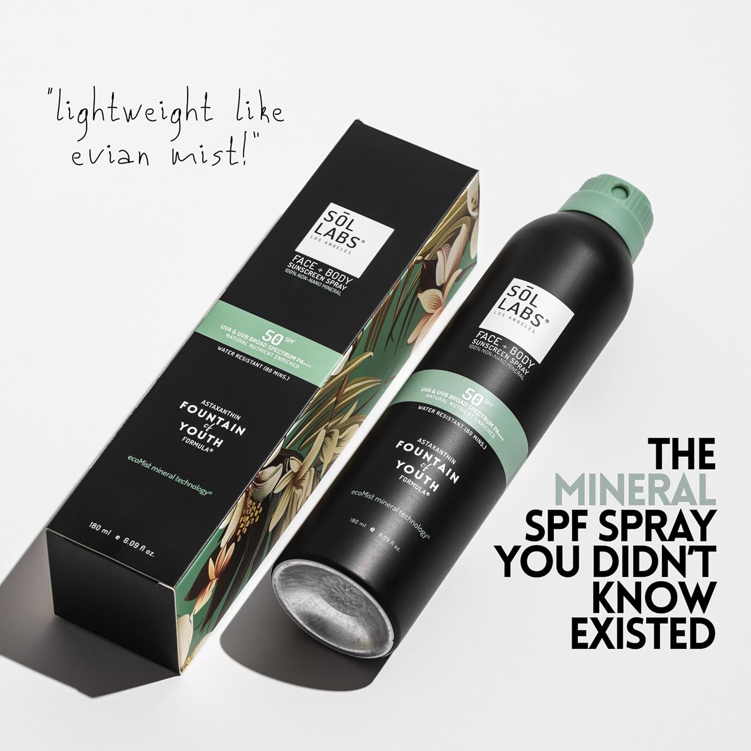 - [Clean, Conscious, and Non-Aerosol Formula for Healthier Skin] - Free from parabens, synthetic fragrances, alcohol, and other harsh irritants, SOL LABS' sunscreen mist is vegan, cruelty-free, gluten-free, and non-GMO. The non-aerosol spray pump delivers a fine, even mist without pressurized gas, making it safer for your lungs, your skin, and the environment. Enjoy smart, sustainable skincare in every spray.