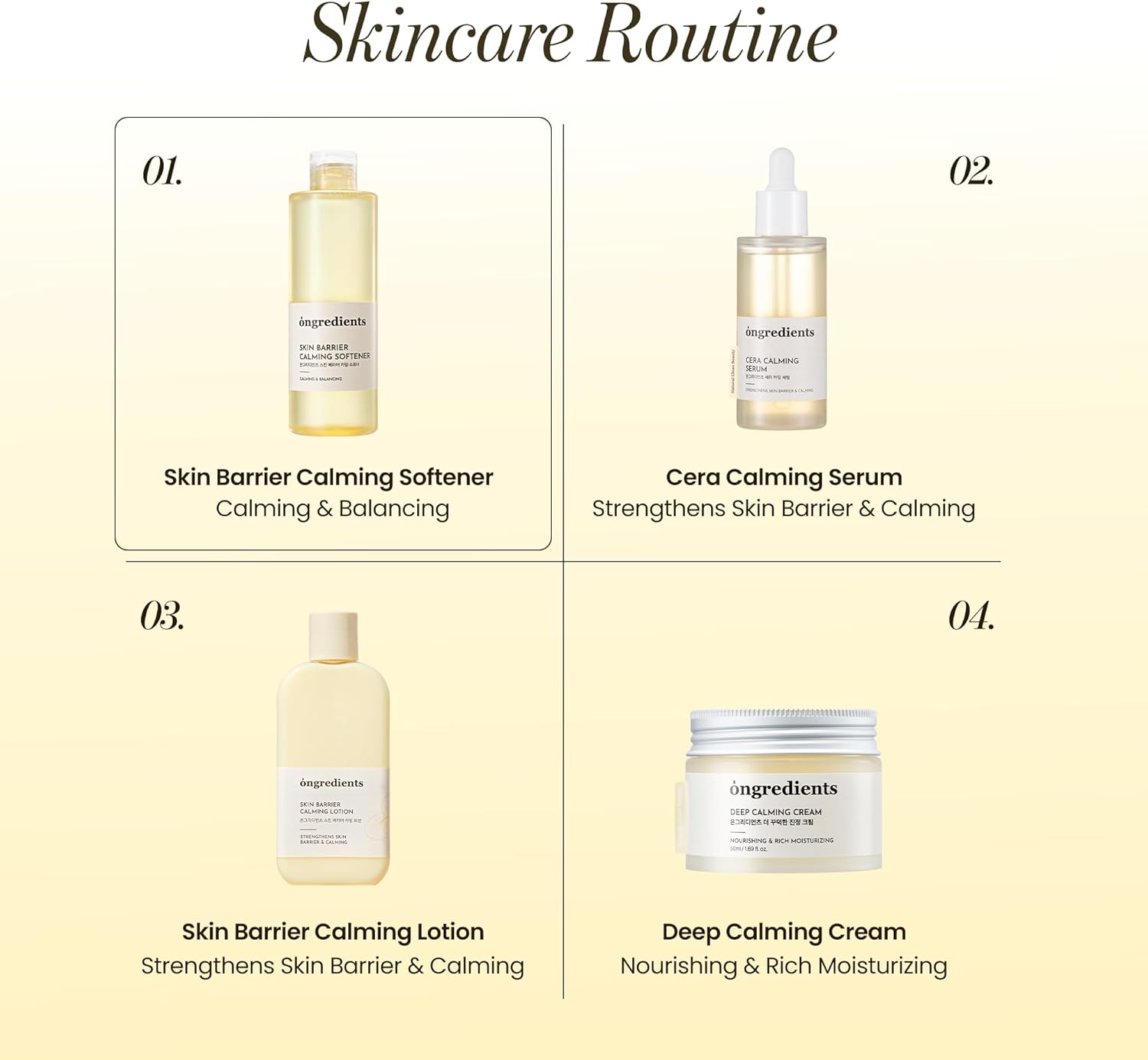 ONGREDIENTS Skin Barrier Calming Softener | Daily Soothing Toner for Dry, Sensitive Skin | Panthenol, Hyaluronic Acid, Ceramide, Hydrating, pH Balancing | Vegan, Korean Skin Care 250ml / 8.45 fl Oz