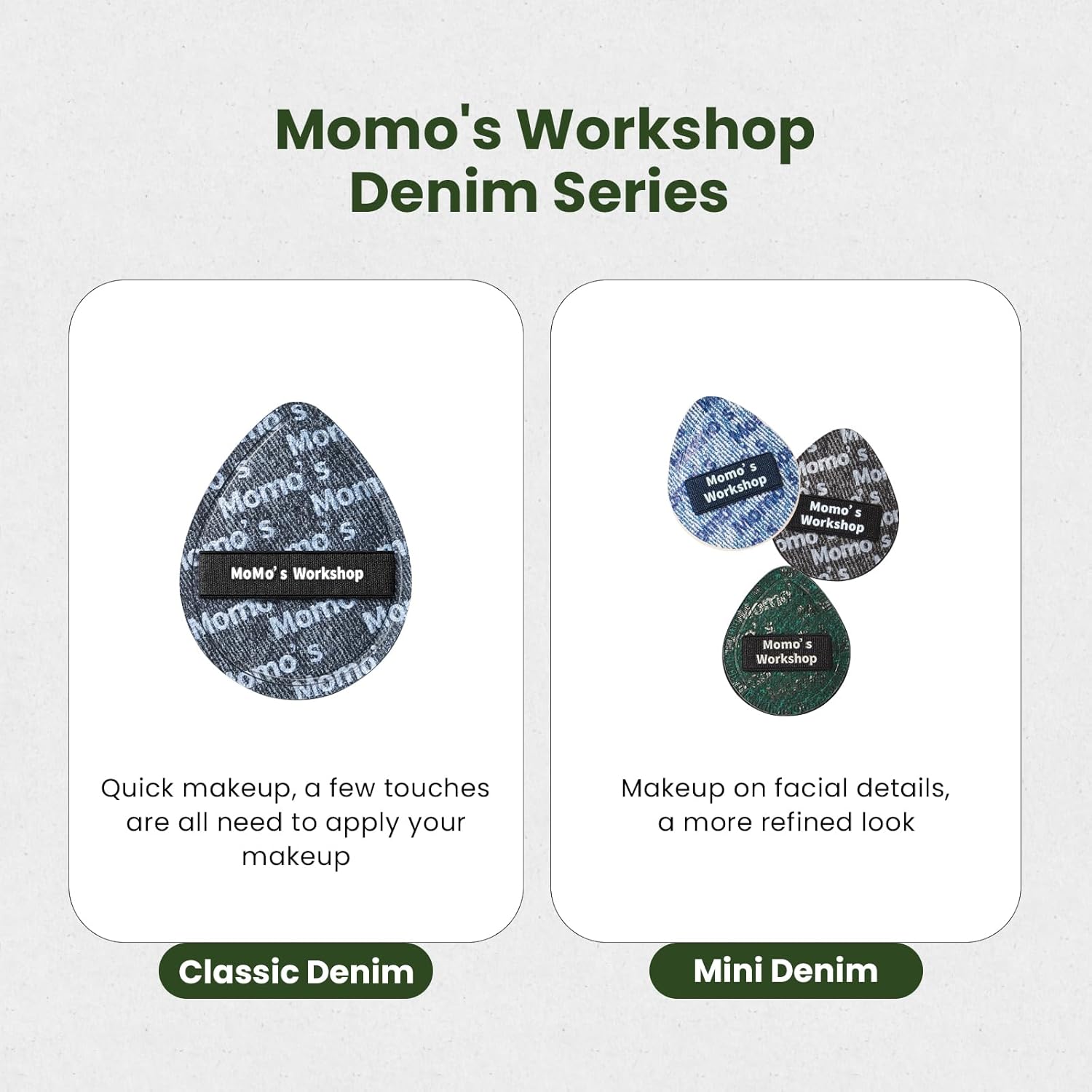 - βοΈγTRAVEL-OPTIMIZED PACKAGEγ Mini makeup sponge puffs*5+ storage, fit in any makeup pouch.The fashionable and retro denim design allows you to enjoy the makeup process even more, and it's also suitable for carrying when going out.