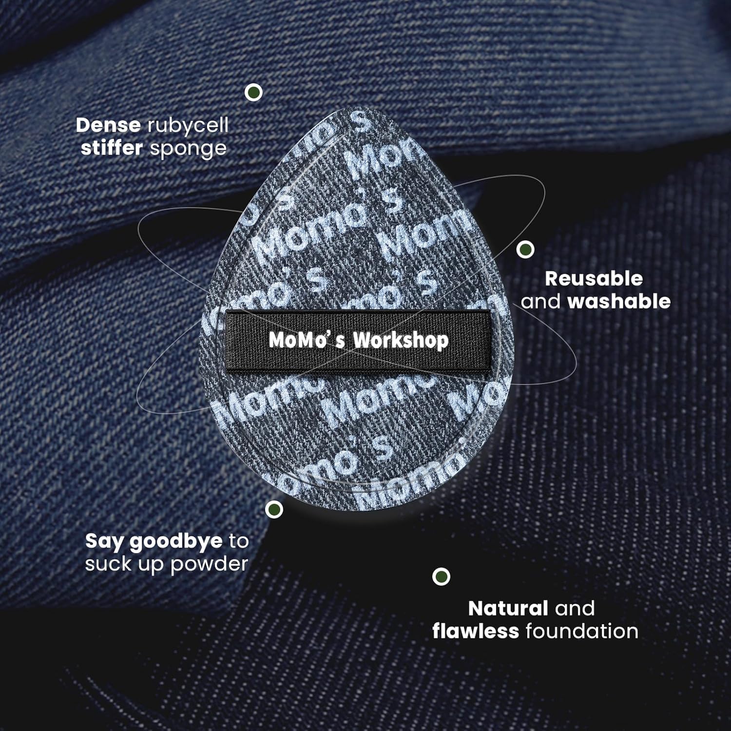 - γNatural & Flawless Makeupγ The black denim makeup sponge puff is made of rubycell and stiffer sponge with super bouncy, effectively applying cosmetics and bringing you natural and flawless effects.Whether you're applying makeup for work, commuting, or traveling, this puff stays put for quick, controlled touch-ups on the go.