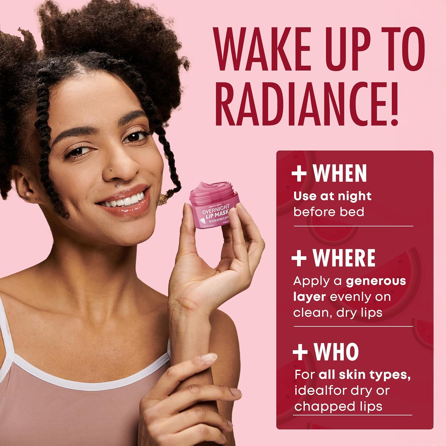 Lip Mask with Watermelon – Overnight Lip Repair, Intense Hydration & Smoothing – Dermatologist Tested, Korean Skin Care – 95% Natural, Clean Beauty, Cruelty-Free – 1 Pack