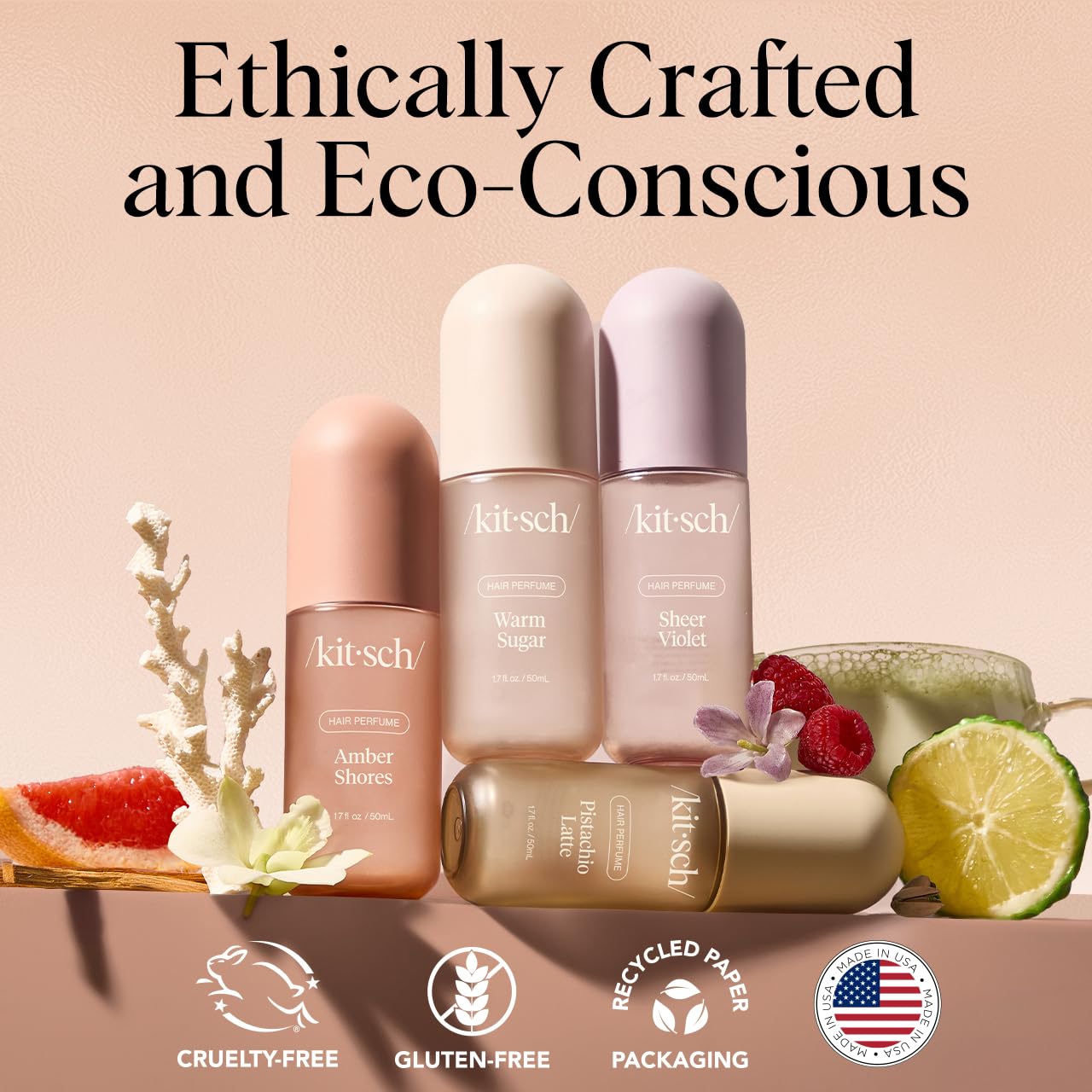 - CLEAN INGREDIENTS, CONSCIOUS FORMULA: Our Kitsch Hair Perfume is vegan, cruelty-free, and free from phthalates, parabens, PFAS, and synthetic CMRs. The 50mL size is ideal for on-the-go freshness, and the bottle is made with 30% PCR materialβbecause great hair days shouldnβt come at the planetβs expense.