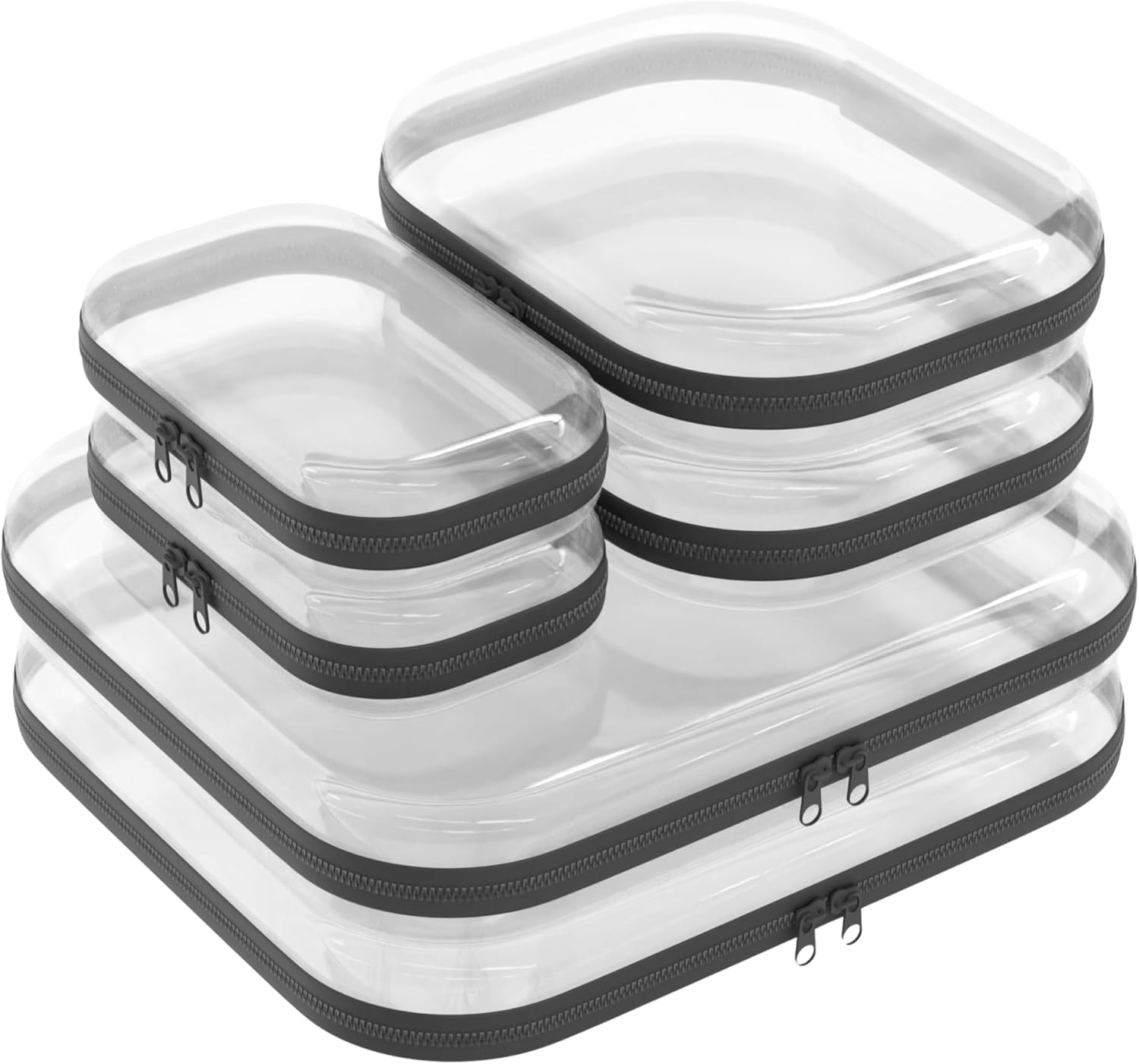 Extra Large 13.7" Durable Clear Travel Organizer Bags 6 Pack, 2x Large, 2x Medium, 2x Small, Clear Hard Shell Zipper Case, Hard Plastic Travel Toiletry Bag for Women, Toy & Make Up Organizer Pouch