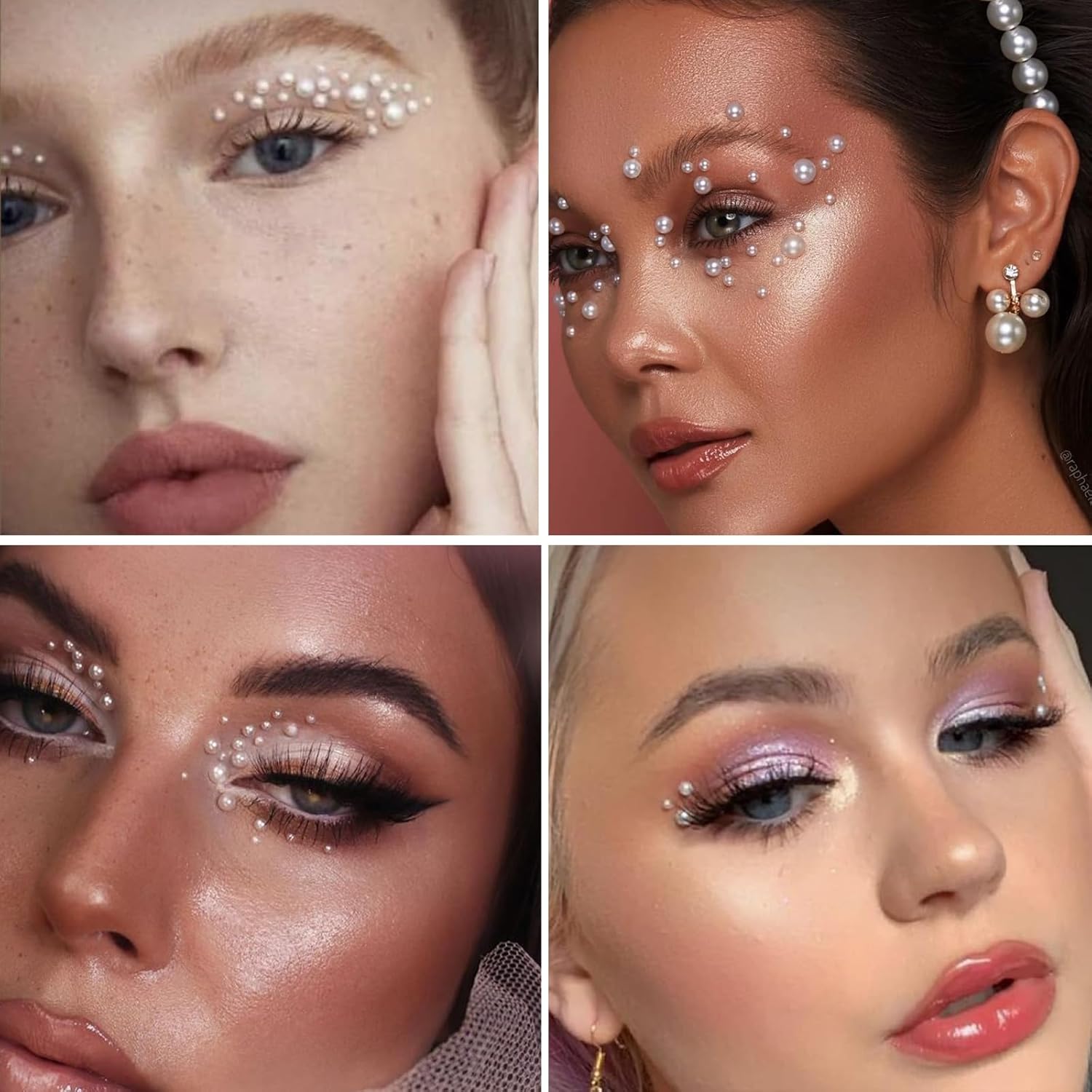 Bow Nail Art Charms with Rhinestones Glue Gel White Flatback Pearls Luxurious Nail Charms Supplies Accessories White Pearls Silver Steel Ball Nails Gems Jewelry for Women Nails Design