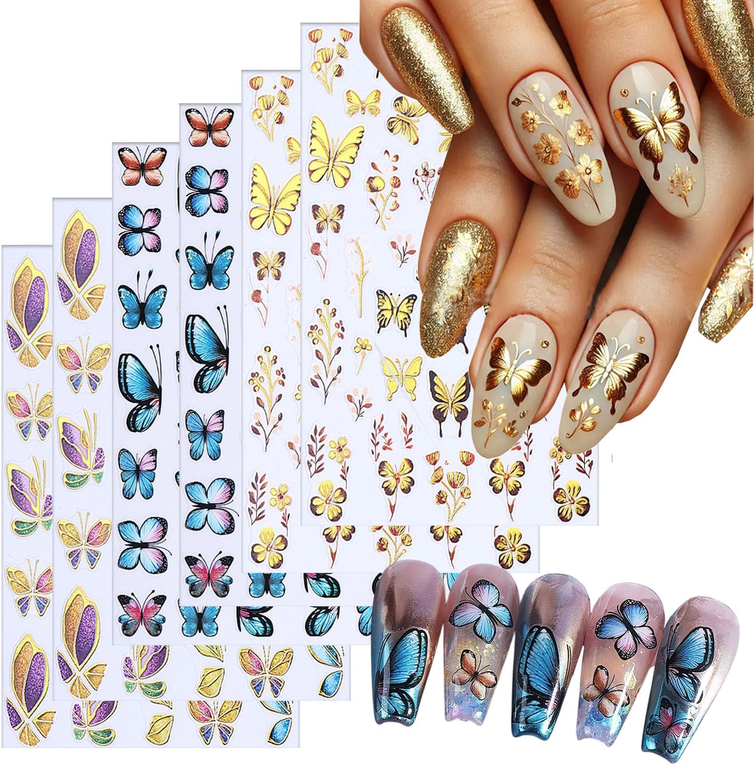- QuantityοΌYou will get 6 sheets butterfly nail art adhesive stickers, each paper measure 3.5 x 2.5 inches(9 x6.5cm). Gold blue butterflies patterns for your choice, these nail stickers are perfect for matching other nail art
