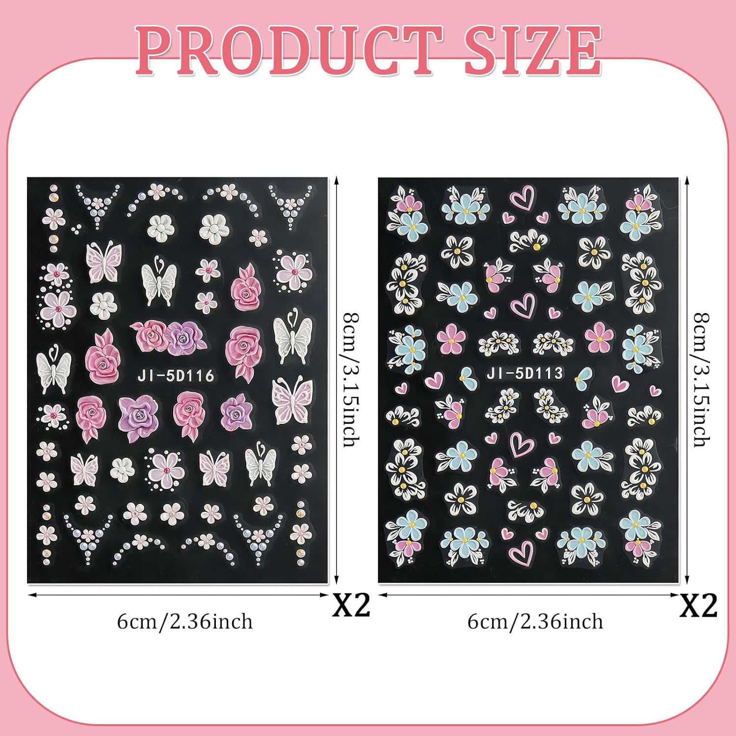 - γFlower Nail Stickers SetγYou will get 4 sheets 3d flower nail stickers for acrylic nails supply, many cute flower pattern for you to choose, colorful floral nail designs, and satisfy your rich imagination of nail DIY.