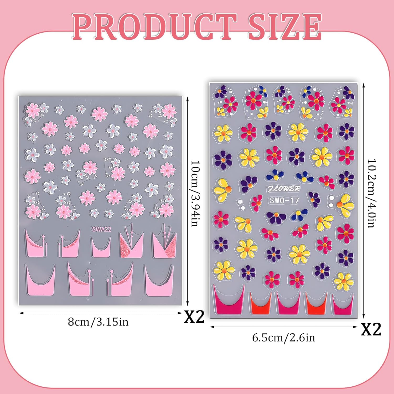 - γFlower Nail Art StickersγYou will get 4 sheets 3d flower nail stickers for nails salon, many cute flower pattern for you to choose, colorful floral nail designs, and satisfy your rich imagination of nail DIY.