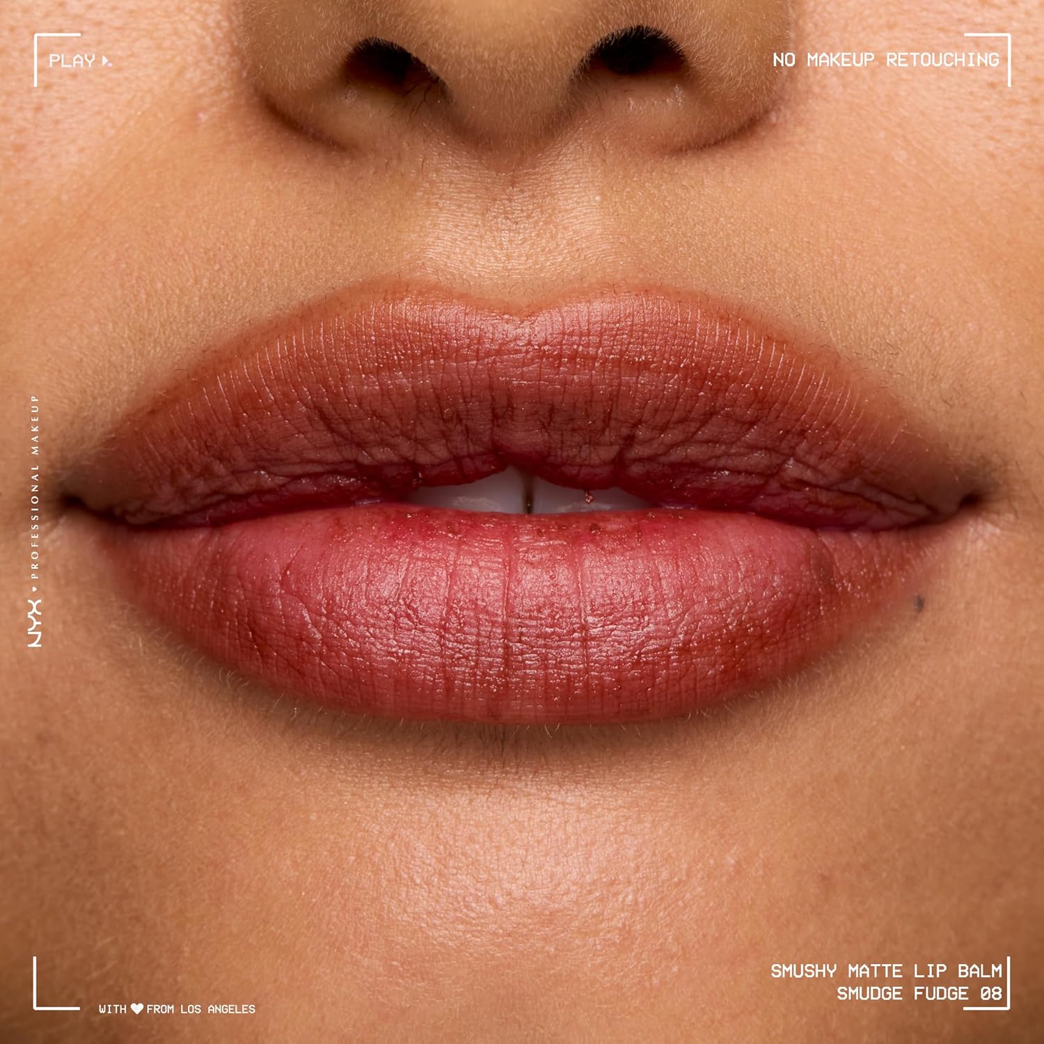 NYX PROFESSIONAL MAKEUP Smushy Matte Lip Balm, Tinted Lip Moisturizer with Soft, Matte Finish - Smudge Fudge (Chocolate Brown)