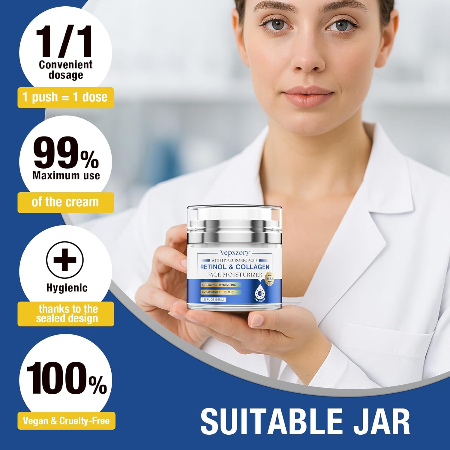 - Face Moisturizer for Women: Experience the power of moisturizer face cream for women with Collagen, 1% Retinol, and Hyaluronic Acid. Our wrinkle cream formula has been carefully refined to support the skinβs natural barrier and provide hydration for improved comfort. Designed to help reduce the appearance of dryness and fine lines, it leaves the skin feeling soft, smooth, and healthy-looking.
