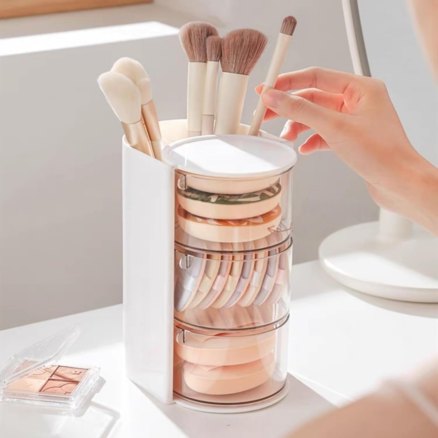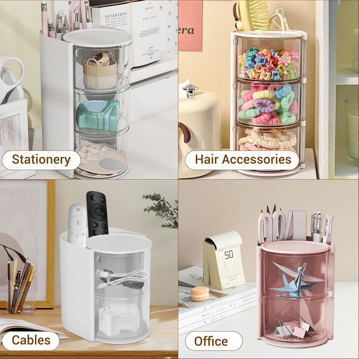 - β γRotatable DesignγThe hair tie organizer unique 180Β° rotatable design allows you to quickly find the powder puff, beauty egg, cotton swab or hairpin you need with just a slight turn, without the hassle of searching, saving you makeup time