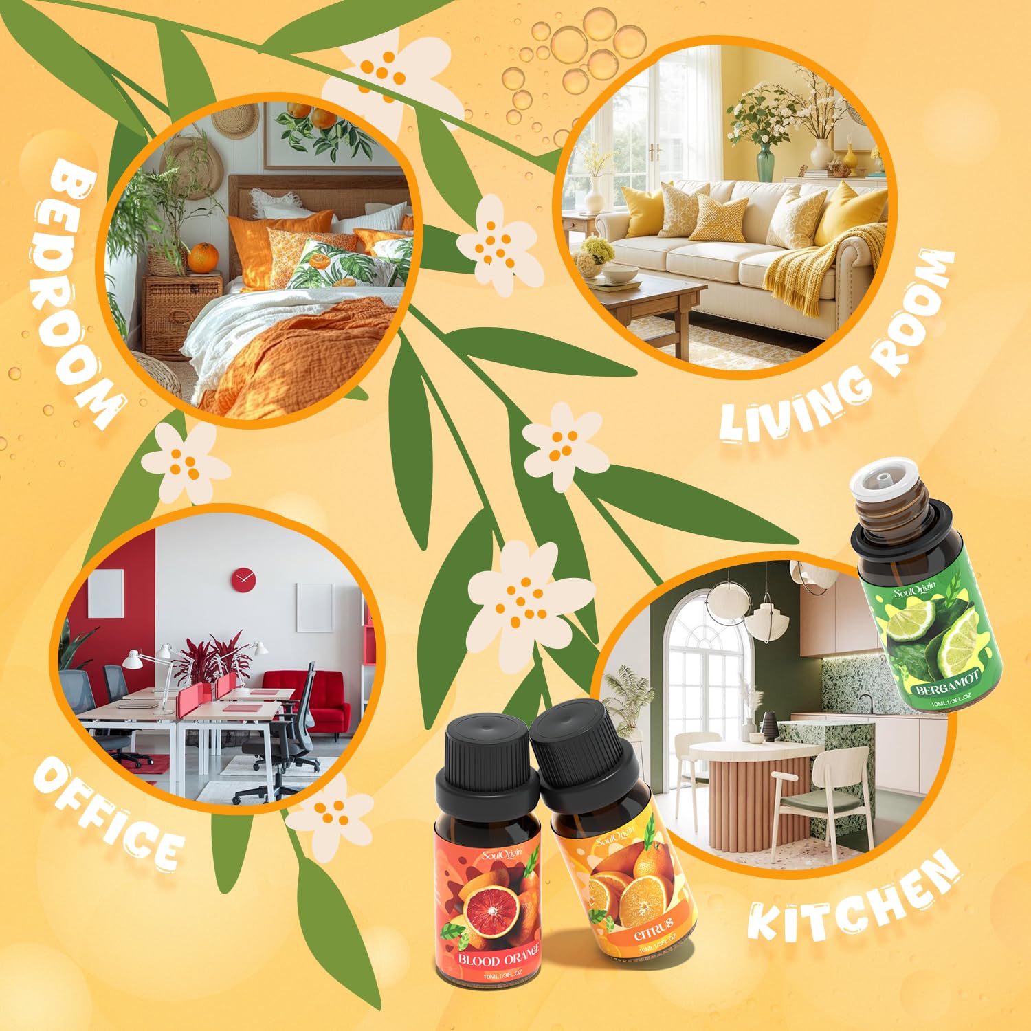 - Zesty Symphony of Scents: Indulge in a vibrant blend of nature’s most uplifting aromas—Blood Orange, Lemon, Bergamot, Lime, Grapefruit, and Citrus. This all-in-one collection brings together the best of citrus essential oils to awaken your senses, refresh your mood, and invigorate your space with crisp, tangy brightness.