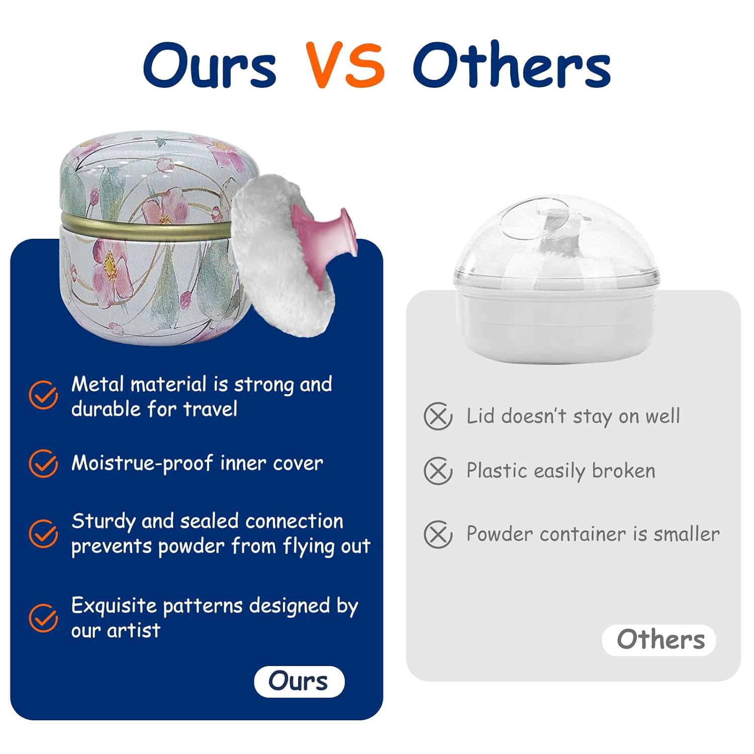 - GORGEOUS POWDER BOX: our powder case is made of tinplate, not easy to break and fade after being dropped, also can be used for a long time. the surface of the powder container has exquisite patterns designed by our artist, bring visual enjoyment.
