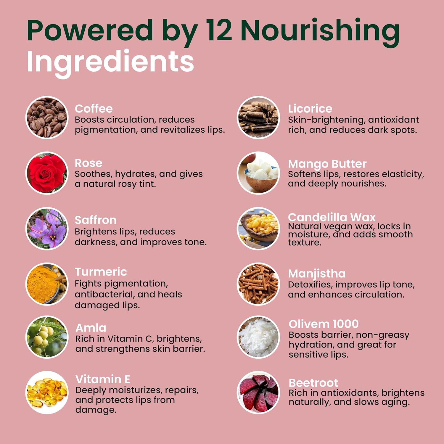- 🌿 Ayurvedic Brightening for Dark & Smokers’ Lips: Our formula blends time-honored Ayurvedic botanicals—beetroot, licorice, turmeric, saffron, manjistha, rose petals, and amla—to help fade pigmentation from smoking, sun exposure, and dryness. Achieve a softer, more even natural tone with regular use