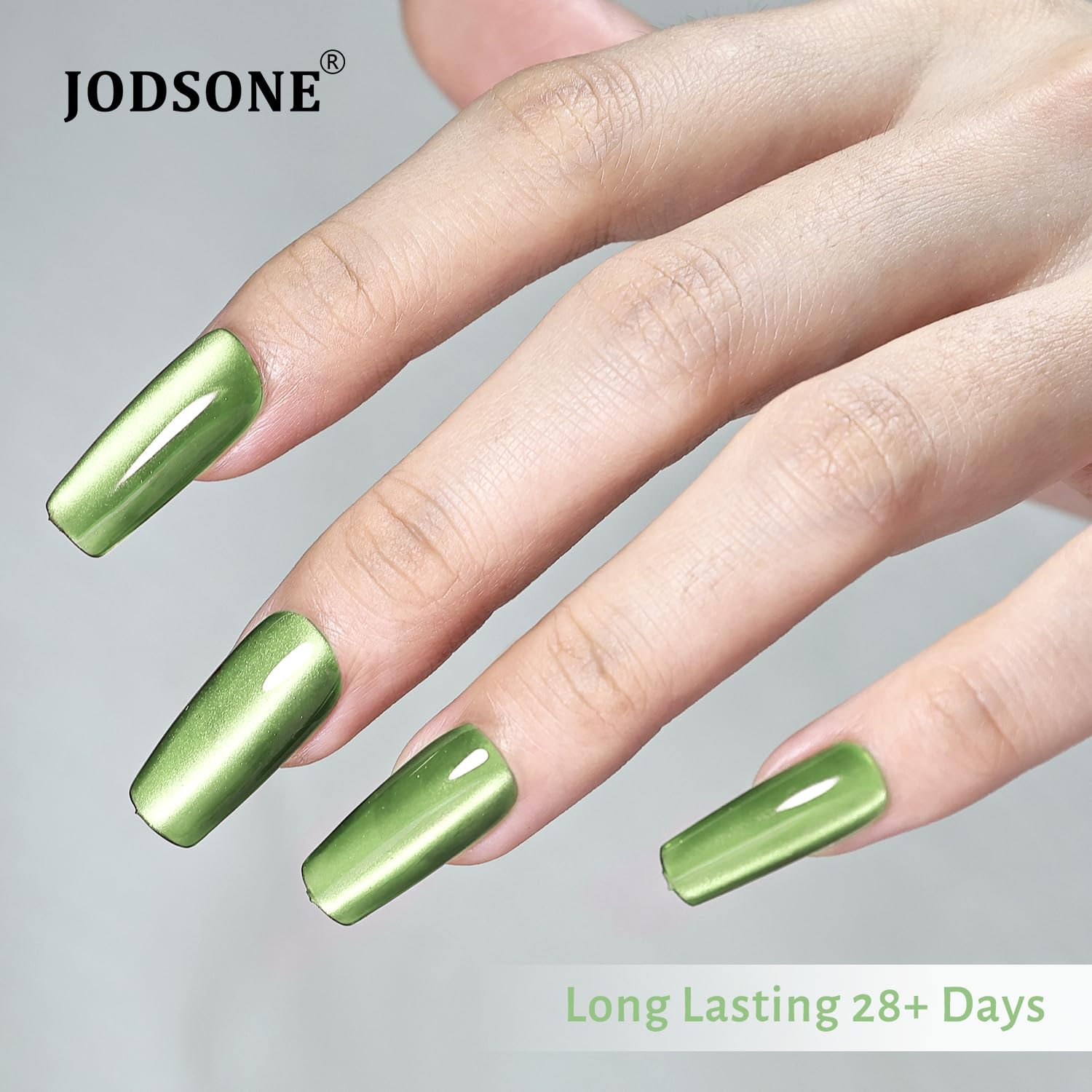 JODSONE Cat Eye Gel Nail Polish 16.5ml Light Green Single Colors for Holographic Glitter Cat Eye with Magnet at Home DIY Need U V Lamp