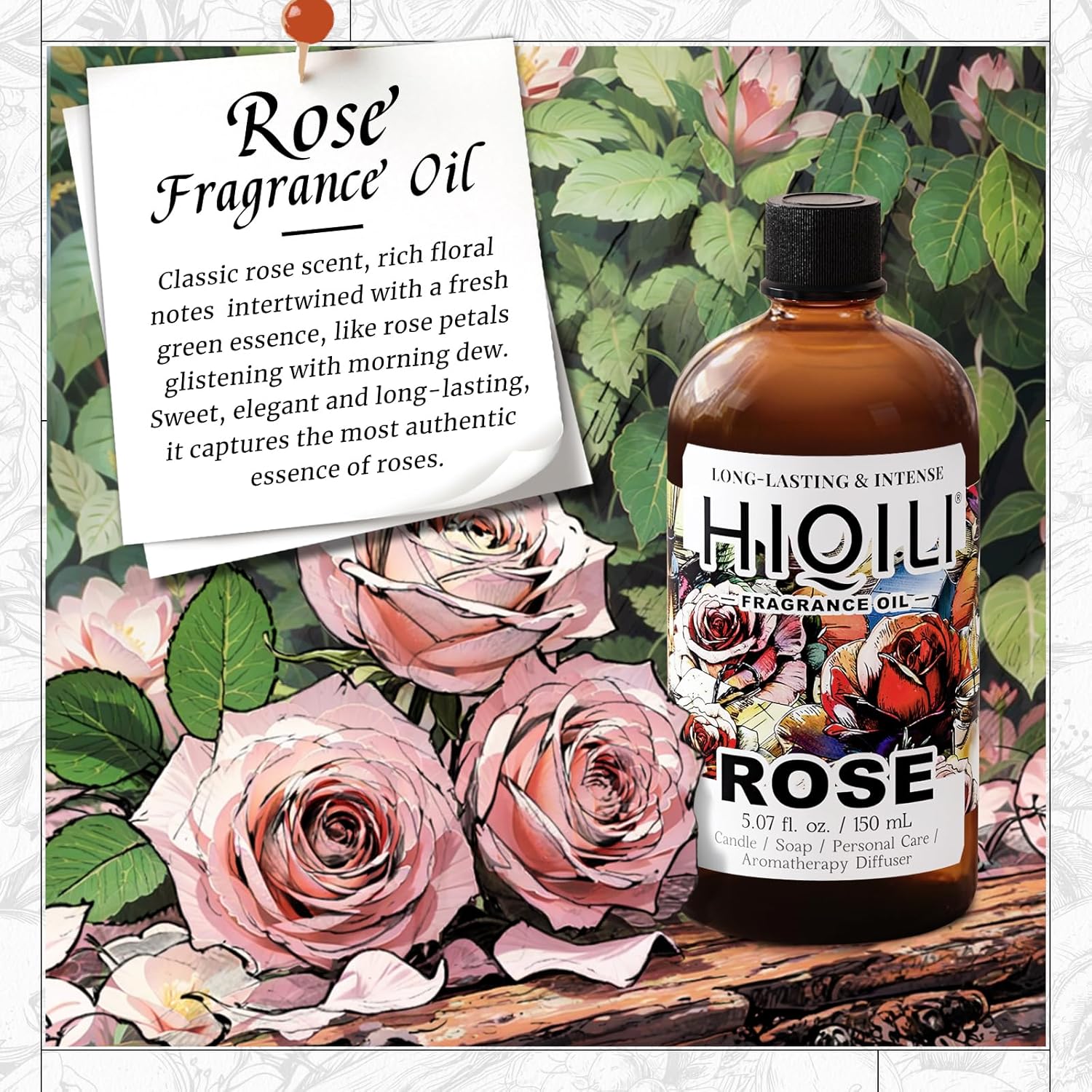 HIQILI Rose Fragrance Oil for Candle & Soap Making, Essential Oil Diffuser, Floral Scents, Add to Laundry Dryer Balls - 5.07 Fl Oz