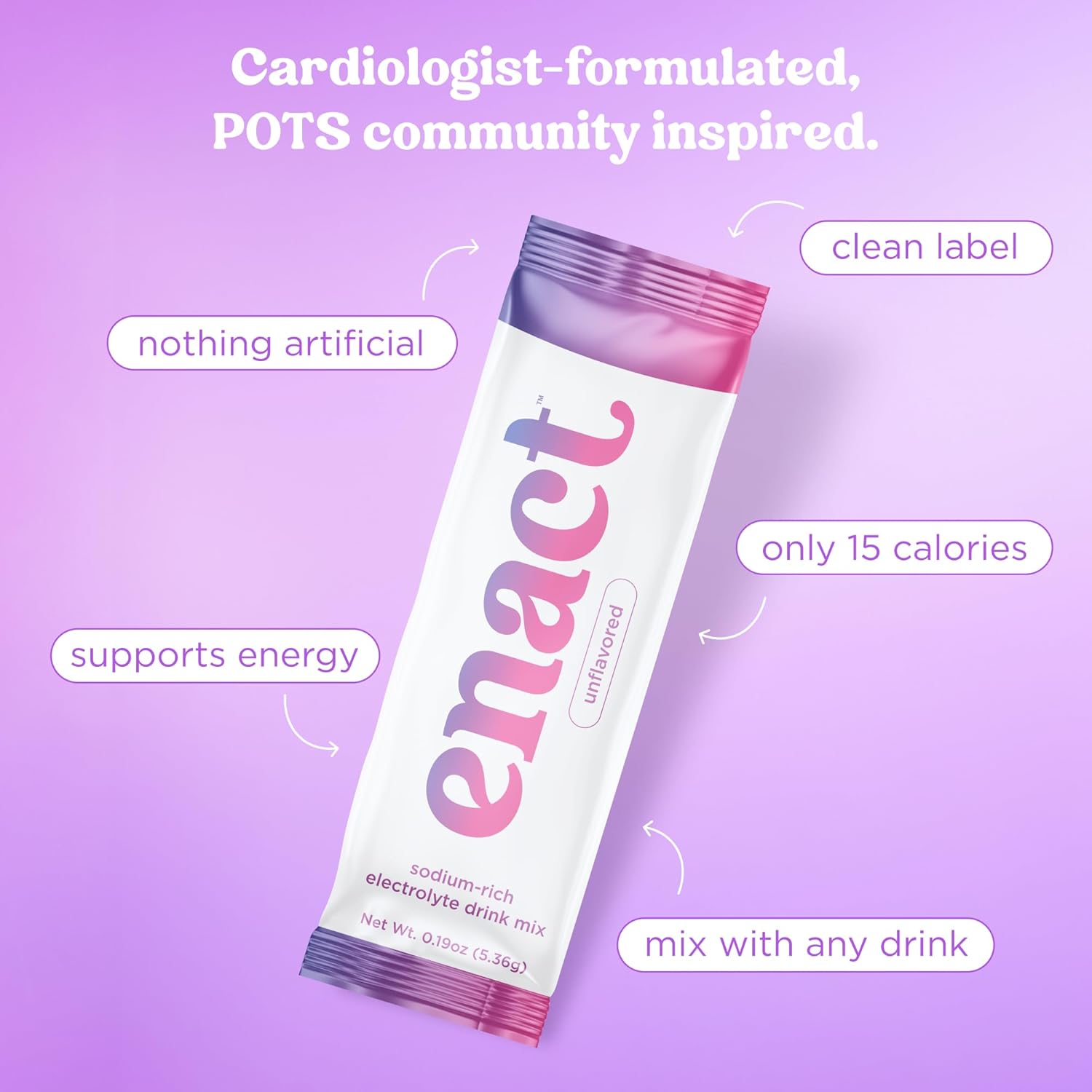 - WEβRE HERE FOR YOU. You deserve a hydration formula that truly supports you. If Enact POTS electrolyte drinks donβt help you feel stronger, steadier, and more energized, weβre here to helpβno questions asked. Taste Note: You may notice the salt taste β that's the 600mg of sodium working to support your body. This is intentional and a sign that Enact is providing the electrolytes you need.