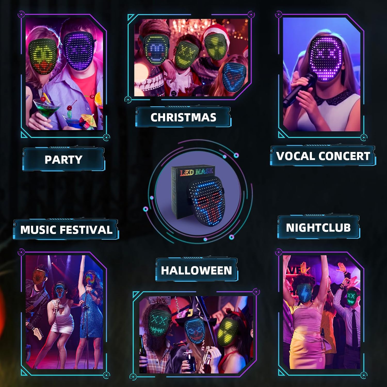- 50 Vivid Display Patterns: This led mask for kids provides 25 dynamic modes and 25 static images for stunning visual effects. This LED full-face mask is perfect for costumes and role-playing, and you can easily switch patterns to attract everyone's attention.