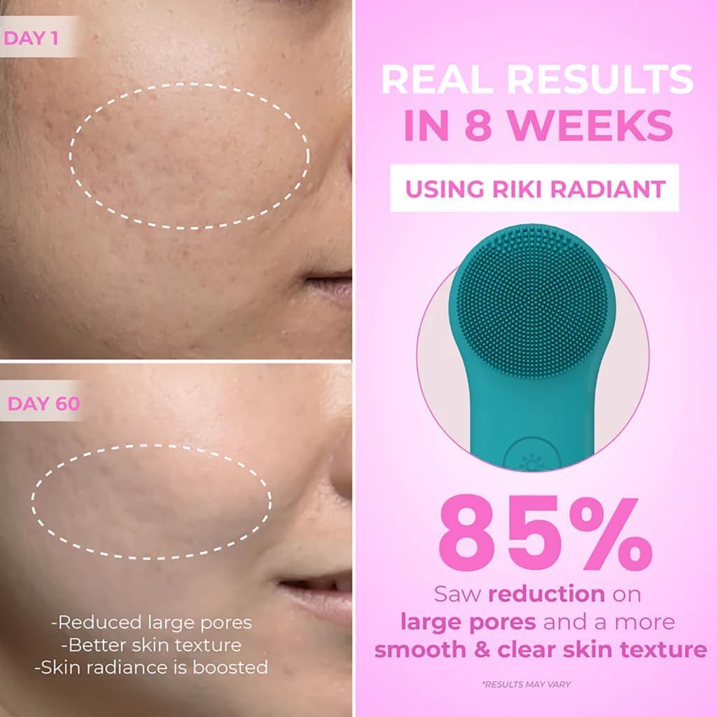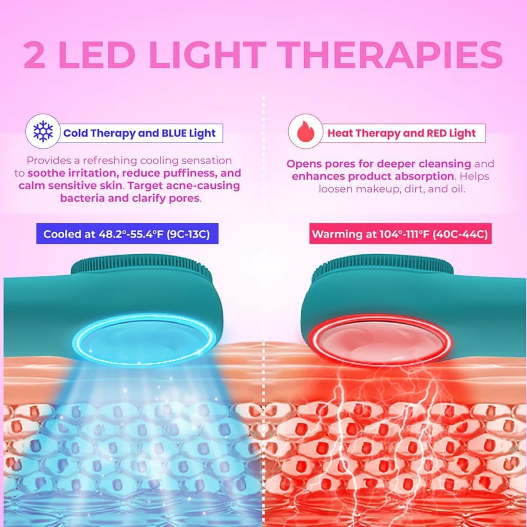 - Dual-Sided Design for 2-in-1 Skincare - Get the best of both worlds with the RIKI LOVES Silicone Facial scrubber. One side features fine, soft silicone bristles (in two sizes) for deep cleansing and gentle exfoliation. The other side delivers Heating, Cold Compress, and LED light therapy for a soothing spa experienceβall in one stylish device.