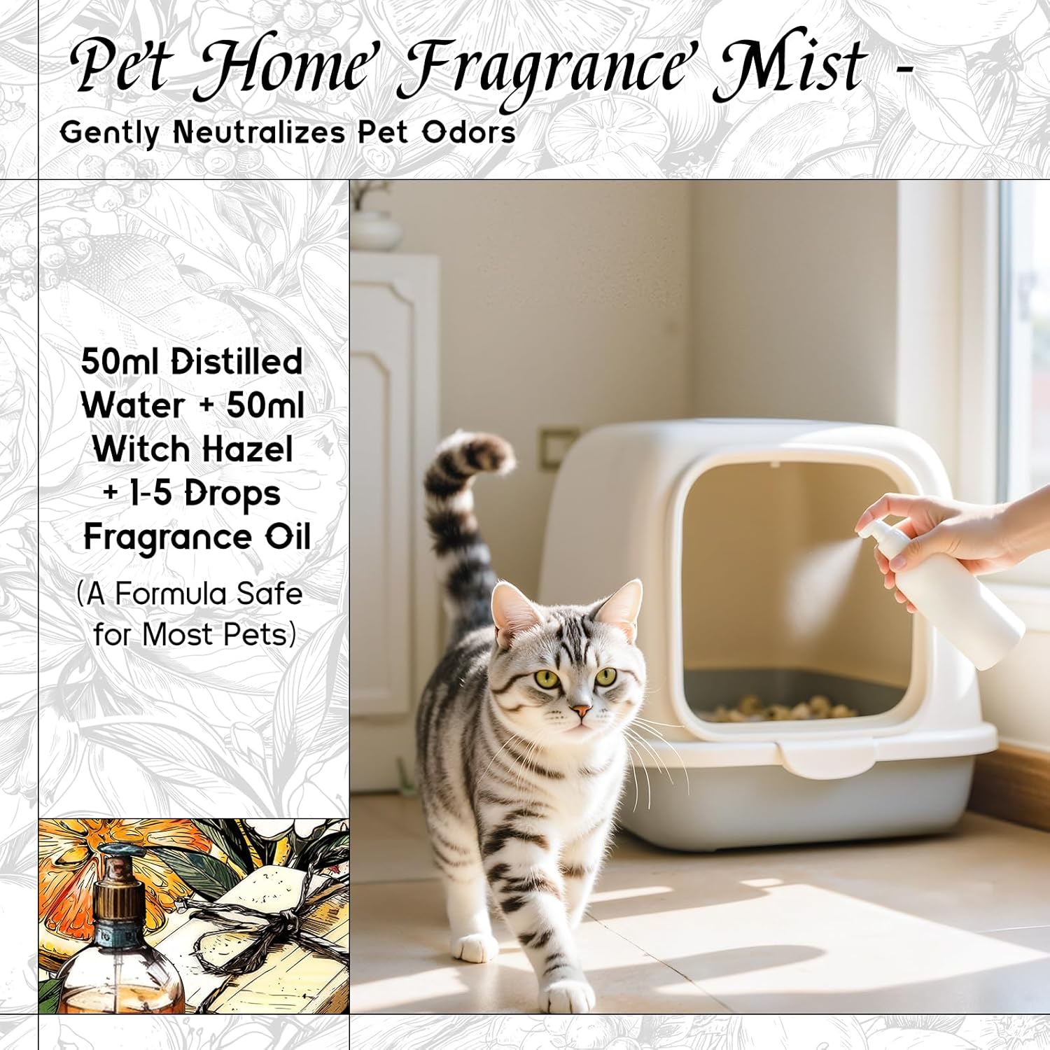 - Pet-Safe & Gentle β Formulated with pet-friendly dilution guidelines for creating pet coat and deodorizing spray. Safe for dogs and cats when used as directed