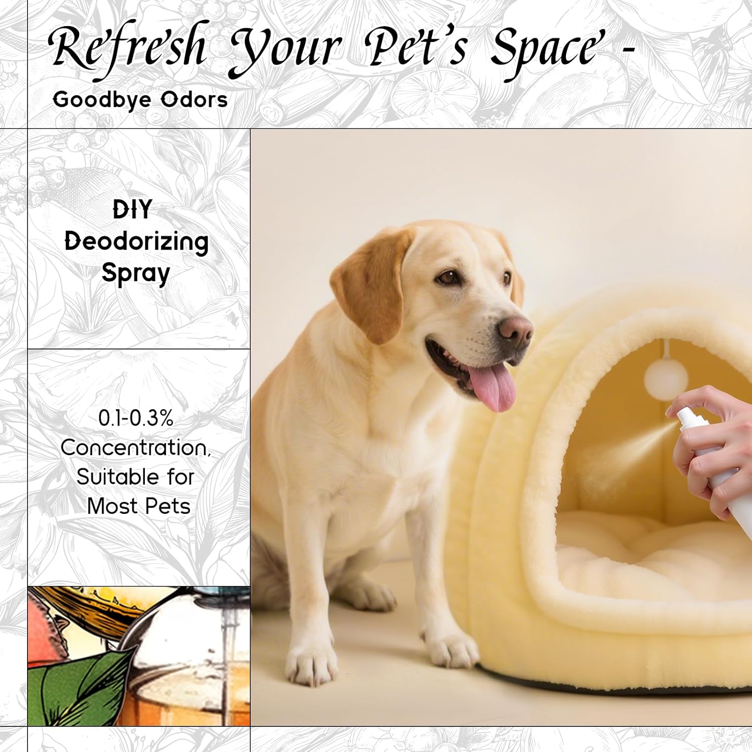 - Pet-Safe Formula β Gentle enough for pet sprays and shampoos when diluted. Can DIY pet home fragrance mist that gently neutralizes pet odors