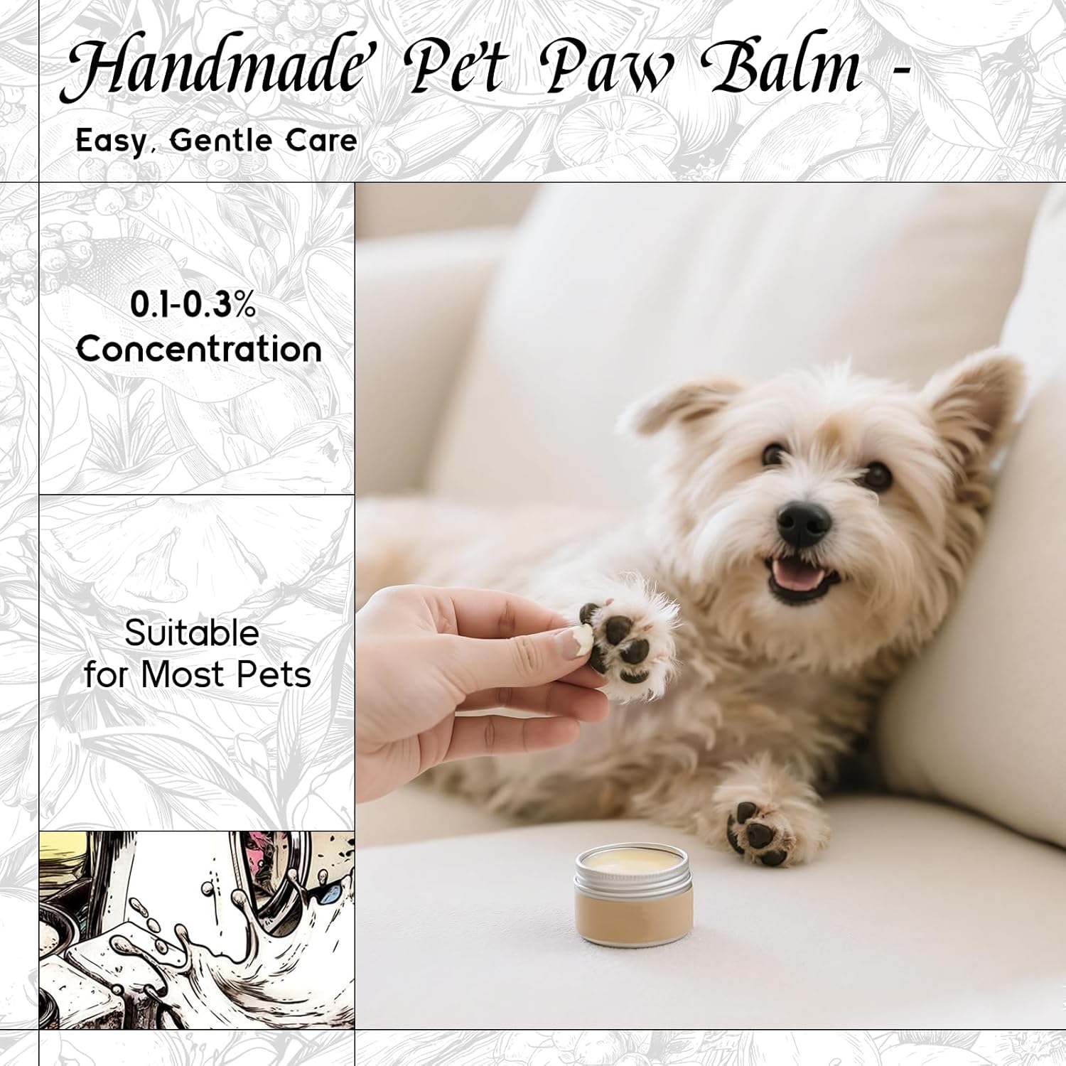 - Pet-Safe Formula: Crafted with a gentle formula thatβs safe for your pets when diluted, great for use in DIY pet products like shampoos, paw balms, sprays, and more
