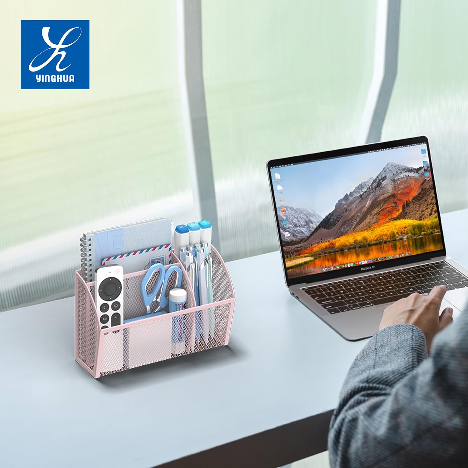 - Strong Magnetic Grip for Multi-Surface Use β This Pink 3-compartment metal mesh desk organizer securely attaches to whiteboards, refrigerators, lockers, and other magnetic surfaces with its powerful built-in magnets. The sturdy hold keeps your pens, pencils, and small essentials in place while freeing up desk space. Perfect as a pen holder for desk, office organizer, or classroom pencil holder
