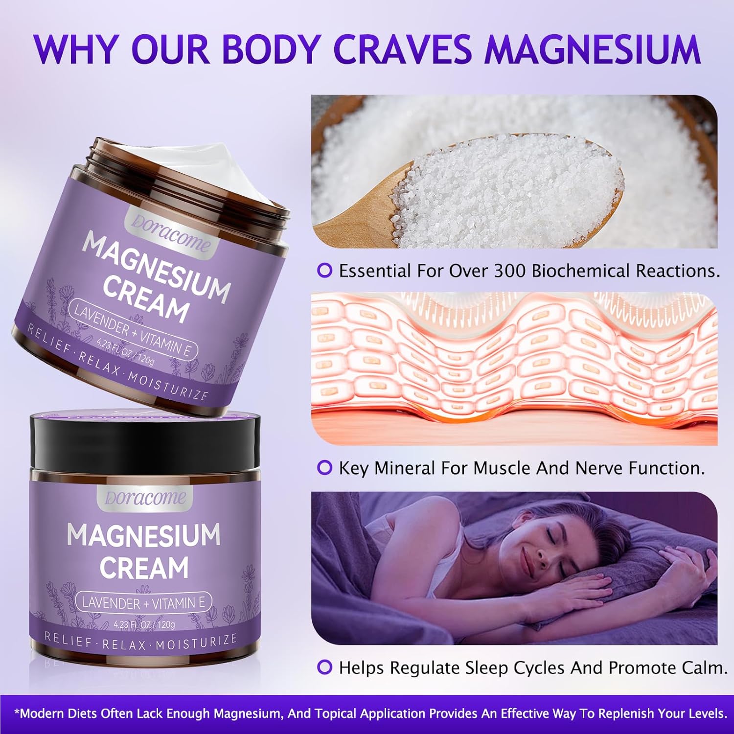 Magnesium Lotion | Magnesium Cream for All skin types, Bedtime Routine, Fast-Absorbing Non-Greasy, Unscented, for Legs, Calves & Feet, 4.23 oz