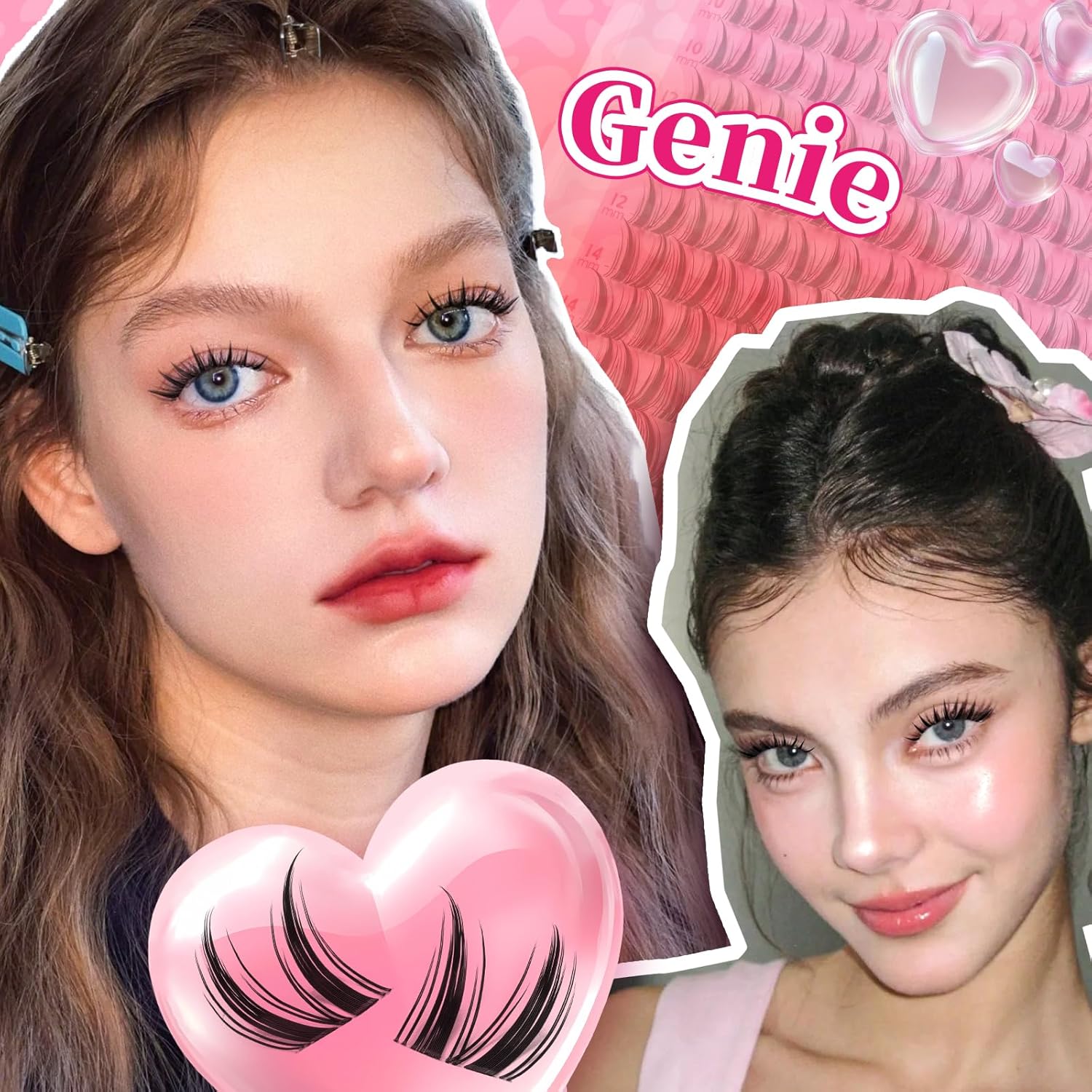 PROLASHBEAUTY Manga Lash Clusters Kit Wispy Eyelash Clusters DIY Lash Extension Kit Individual lashes Incisible Band Eyelash Extension Kit with Lash Glue, Tweezers Lash Brush (Genie,8-16mix)